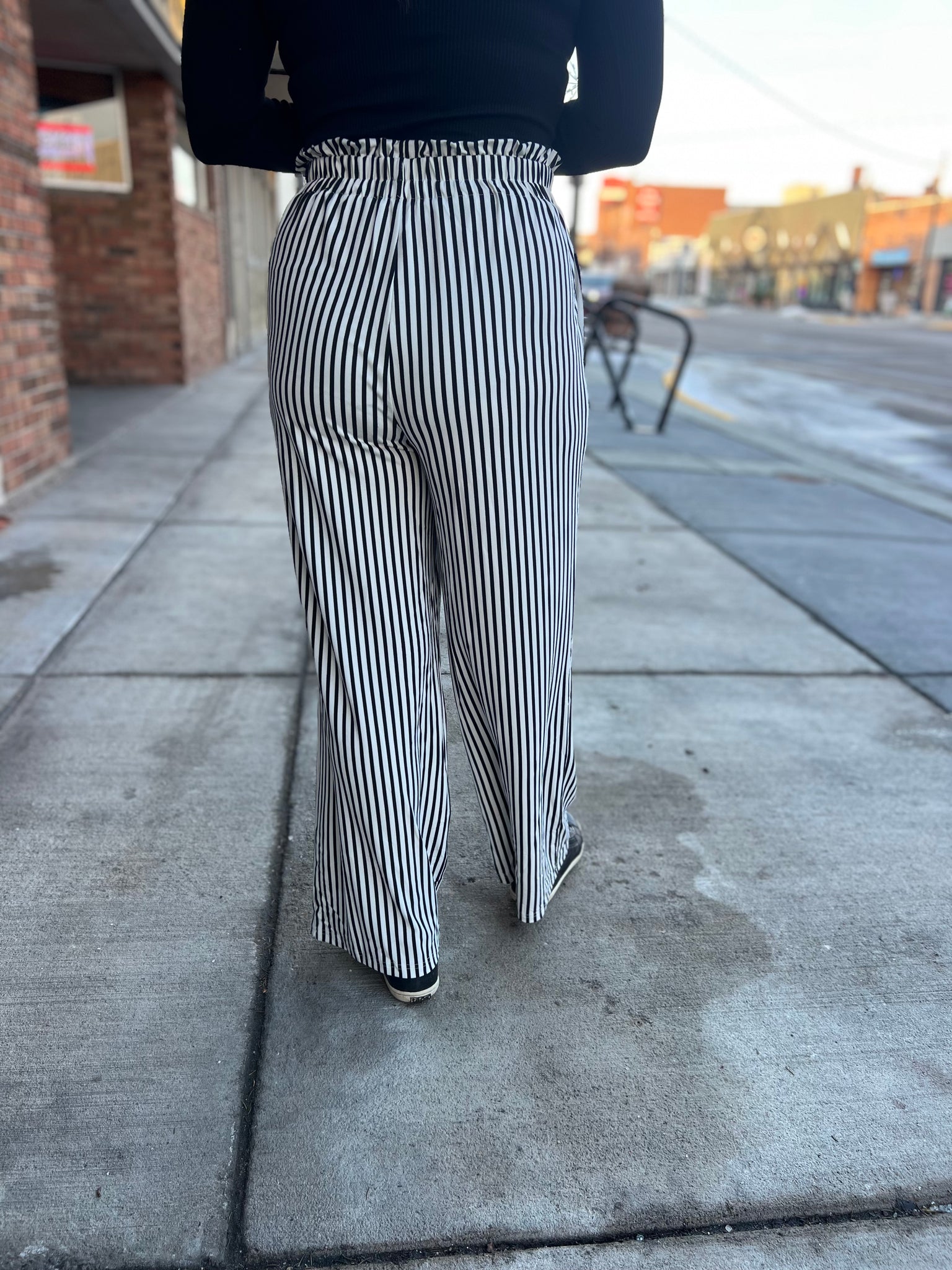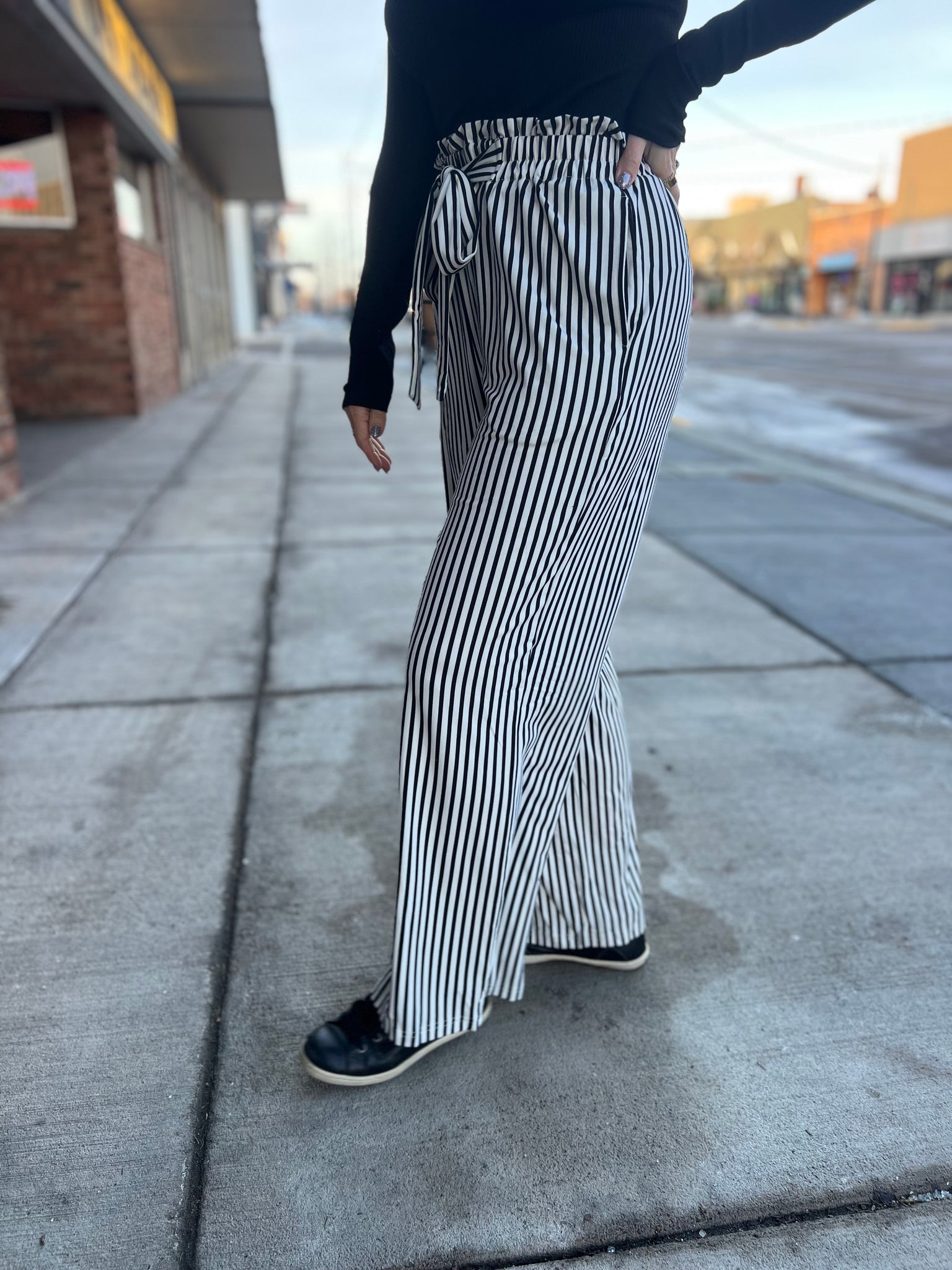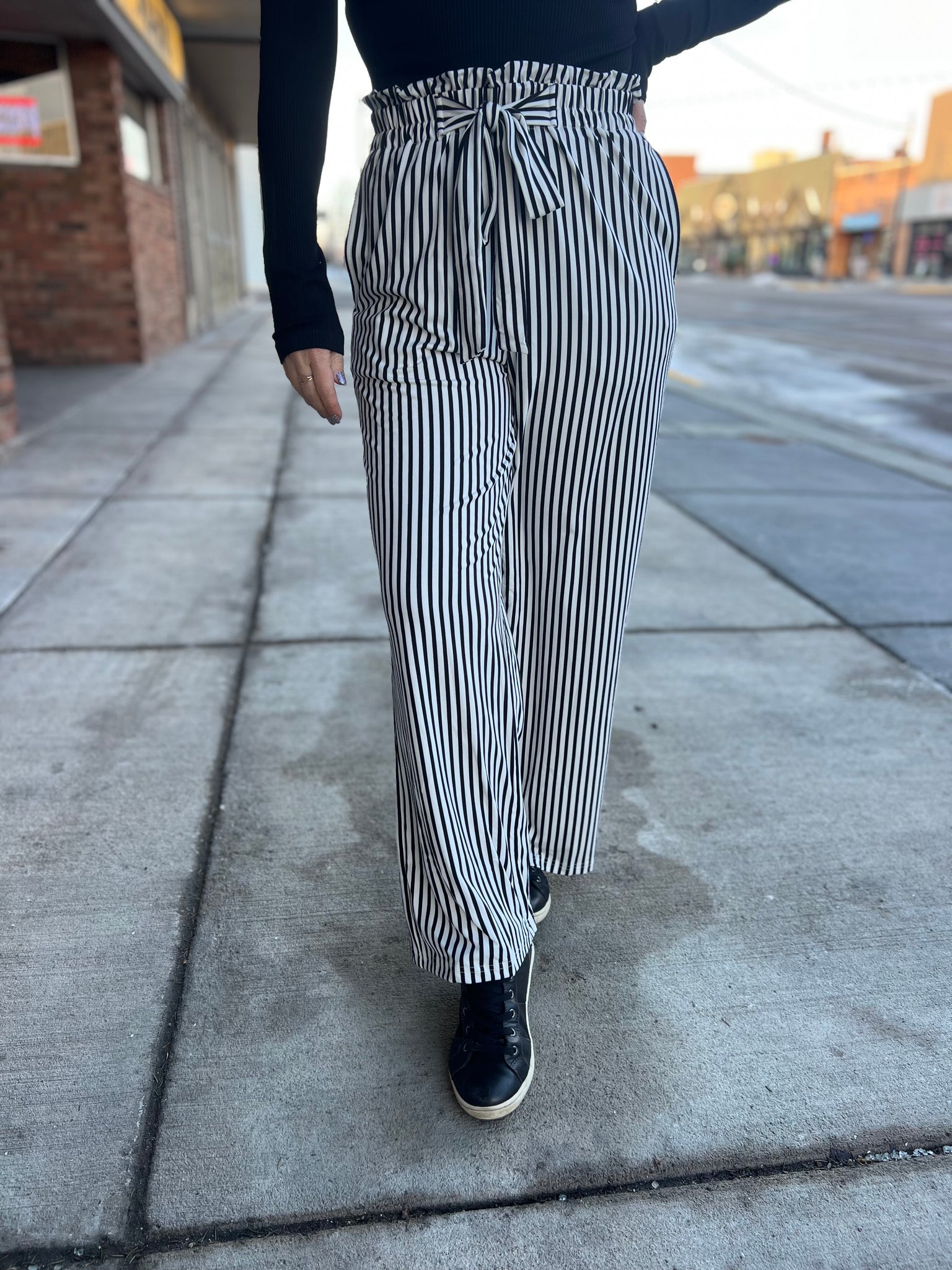 Striped High Waist Tie Pants