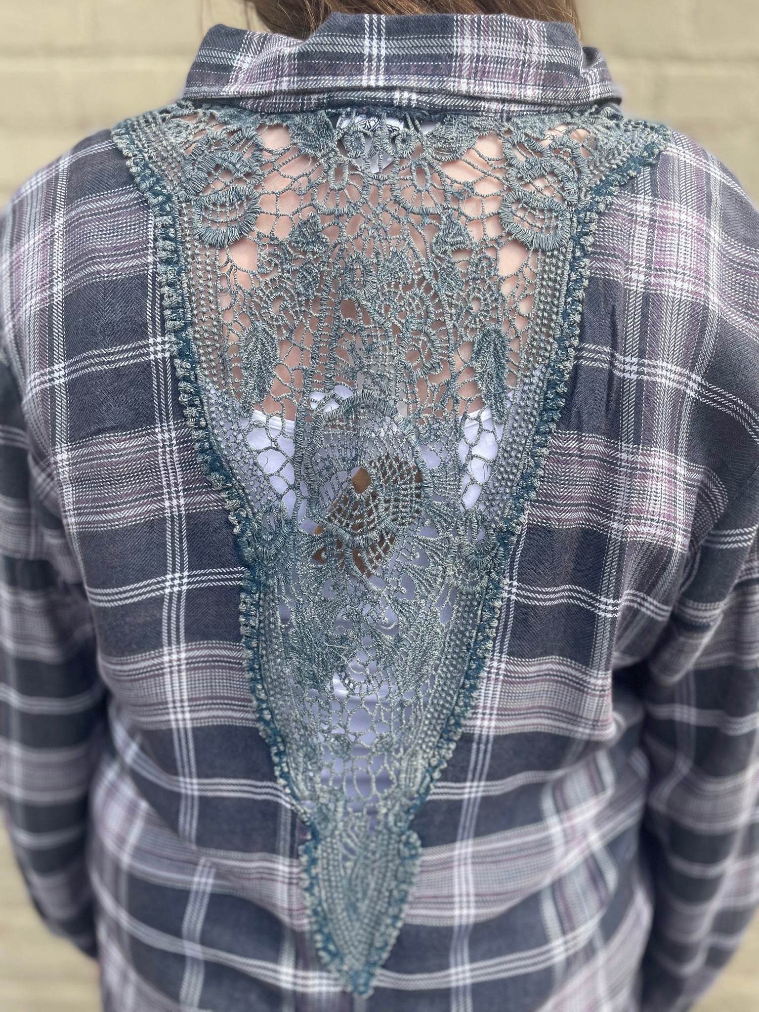 Vintage Button Up Crochet Back Detail