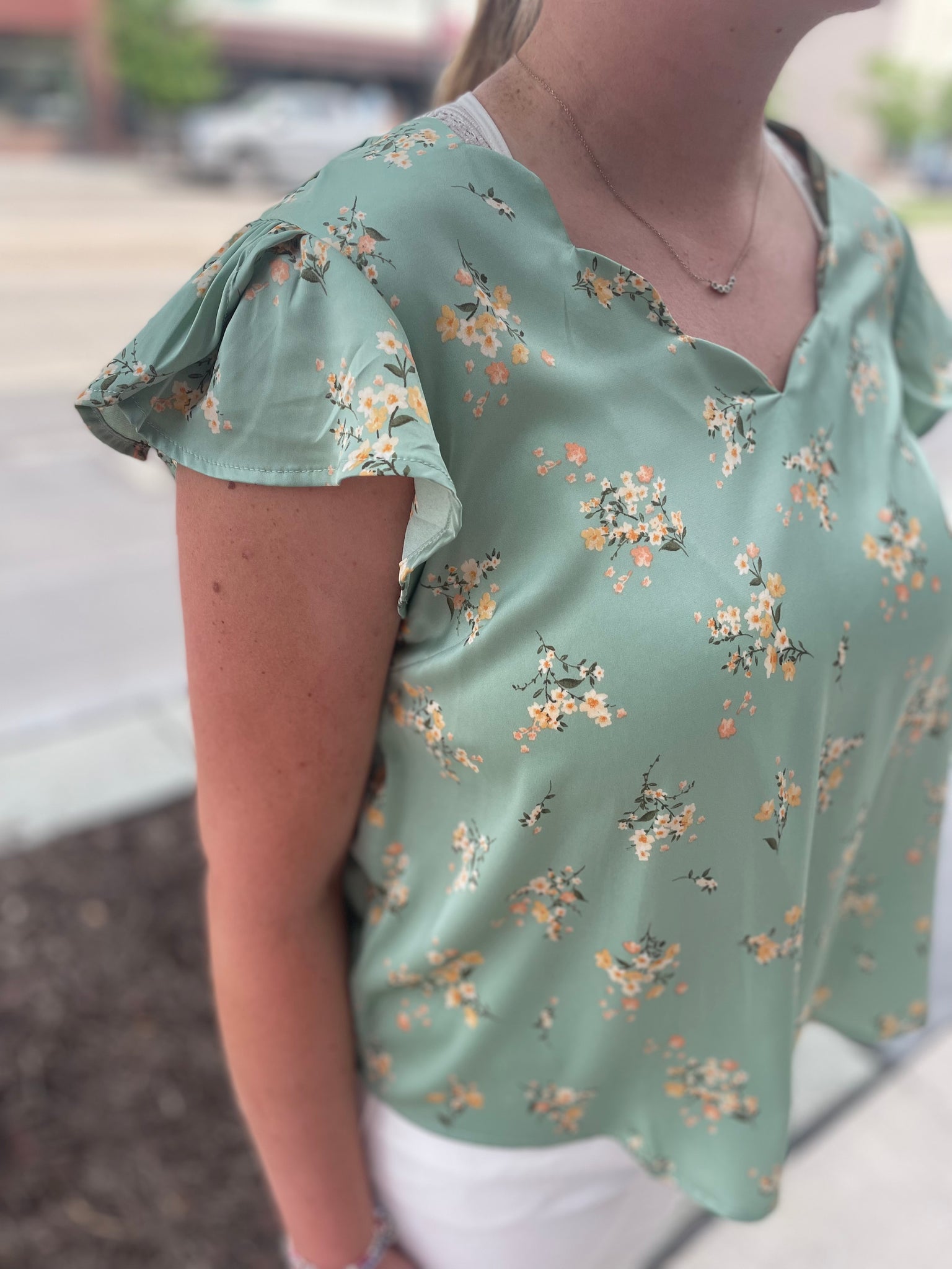 Scalloped V Neck