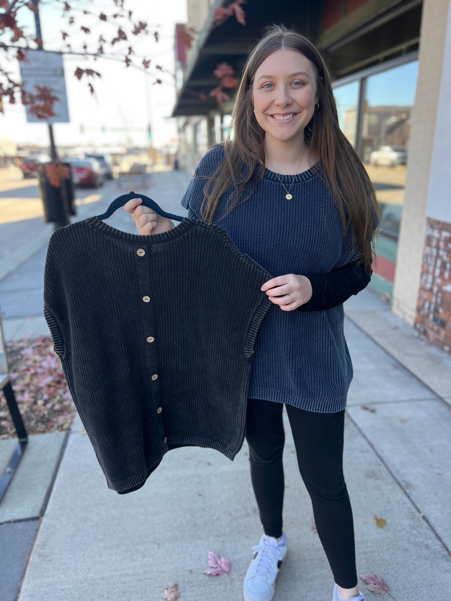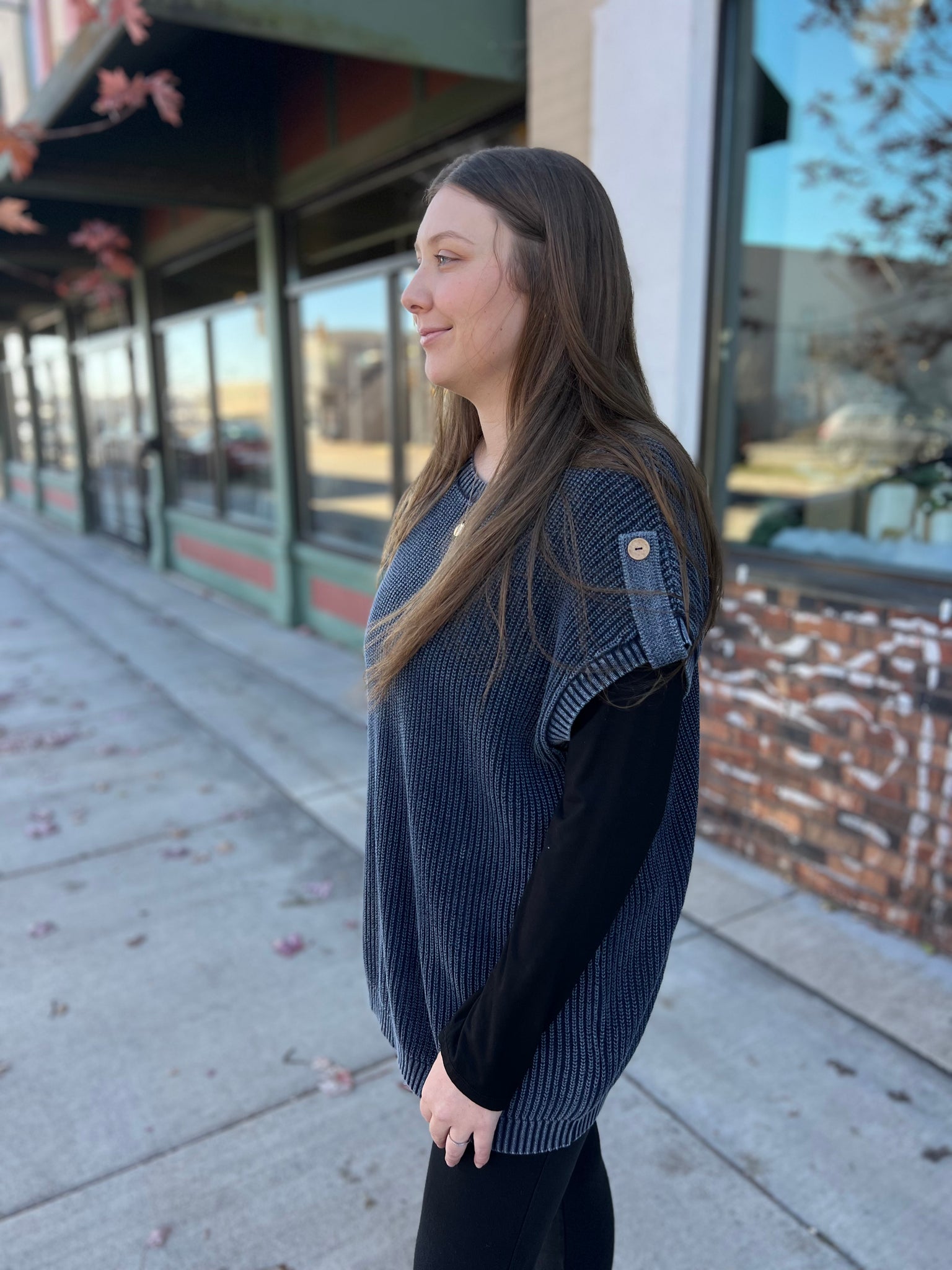 Mineral Washed Short Tab Sleeve Knit Pullover Sweater