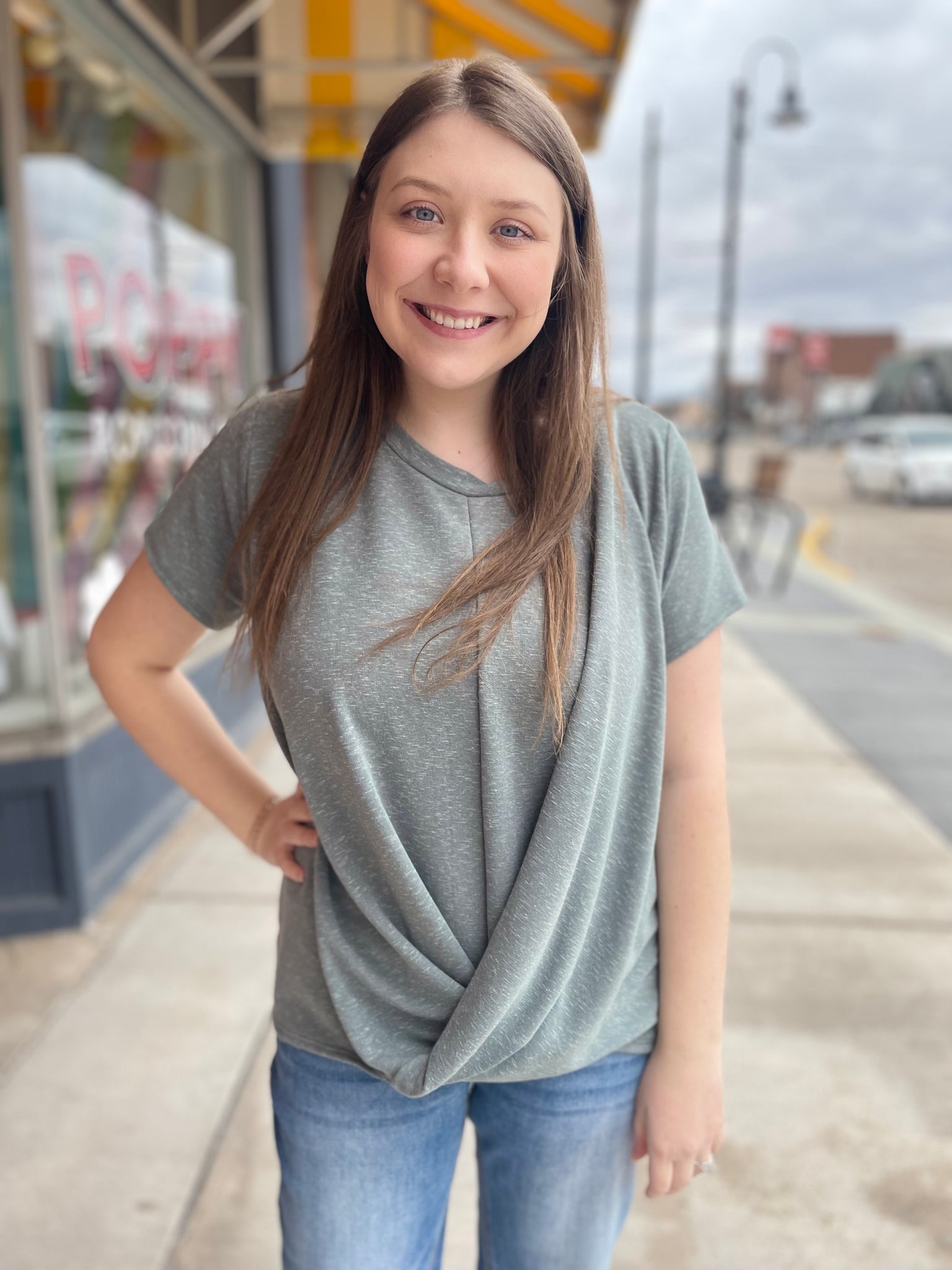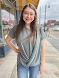 Round Neck Front Twist Short Sleeve