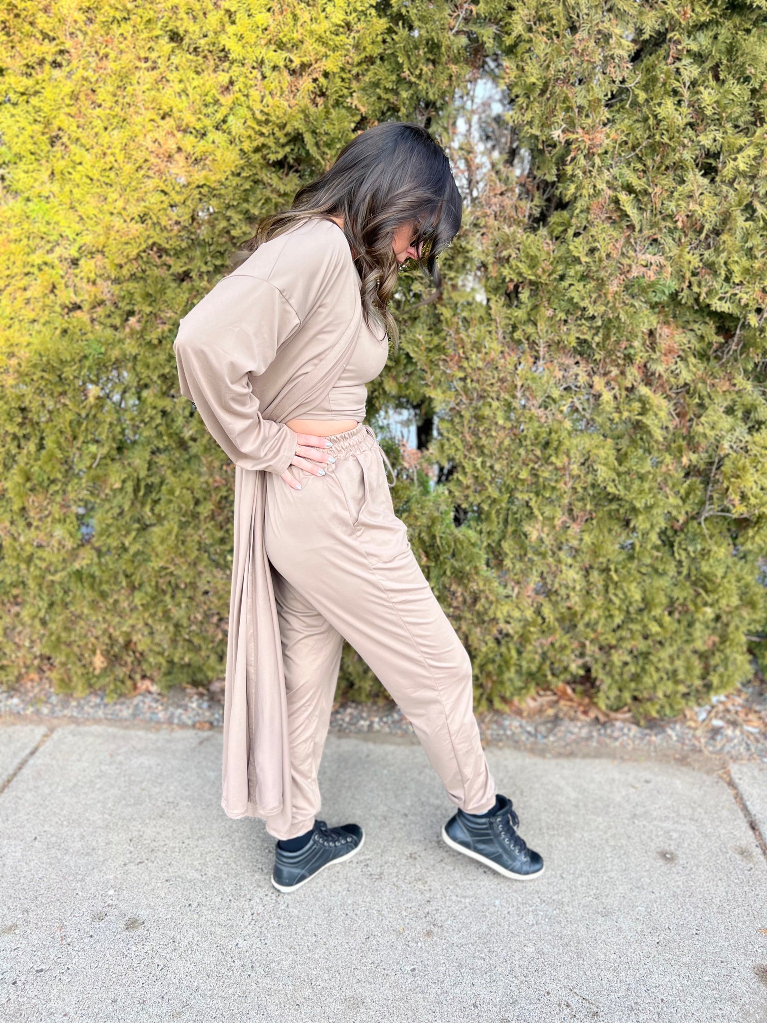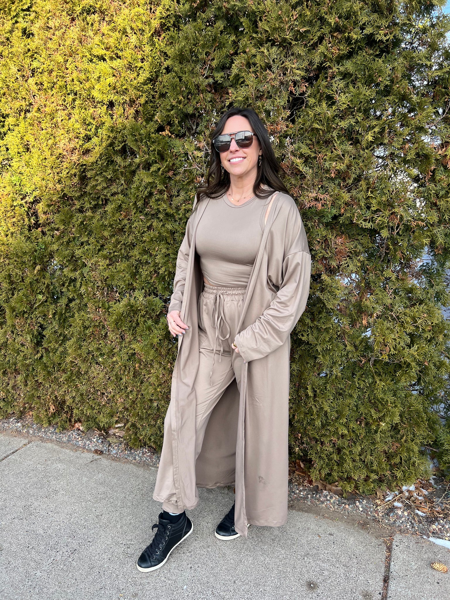 Sleeveless Tank, Open Cardigan Robe, Loose Fit Long Pants