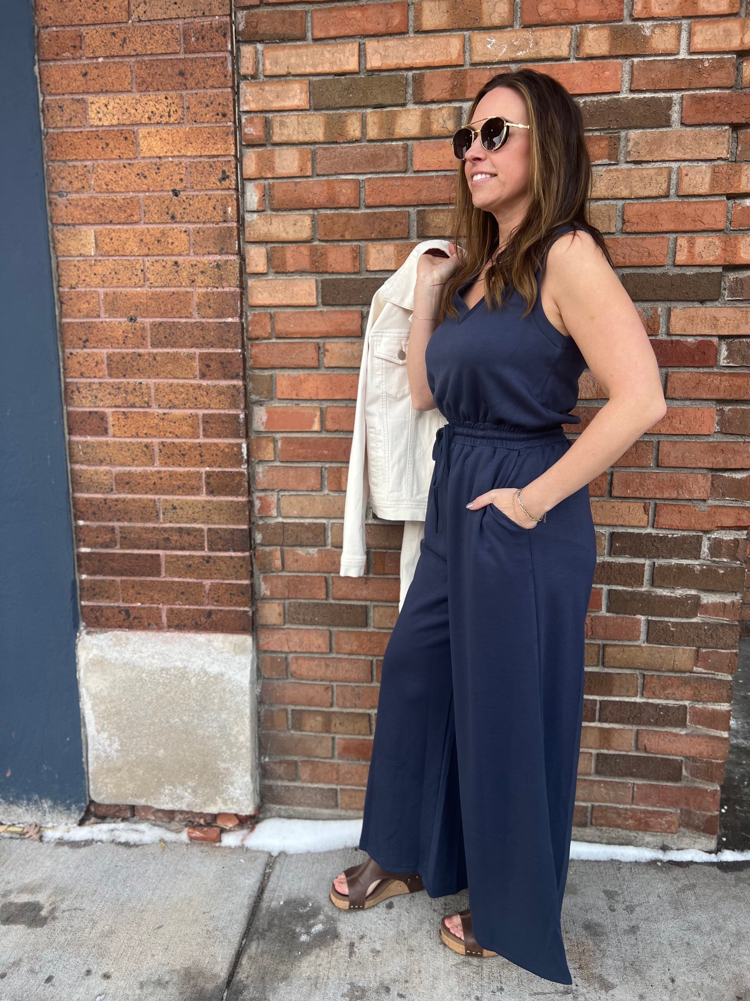 Sleeveless Wide Leg V Neck Jumpsuit