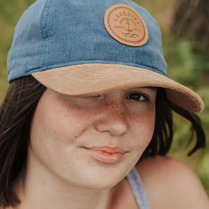 Corduroy Cap with a self adjustable back strap and leather patch logo on front.