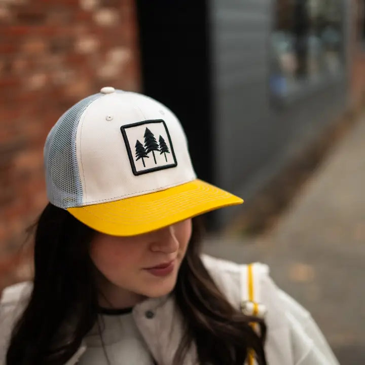Our Three Tree Tri Tone Trucker in Yellow is a unisex hat from The Montana Scene.