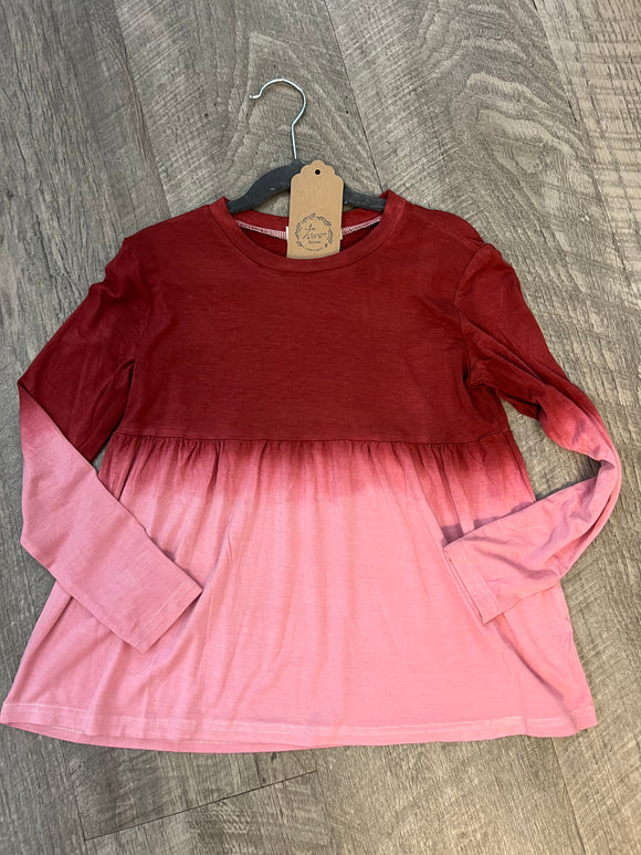 Kids Long Sleeve Top W/ Ruffle Bottom Hem