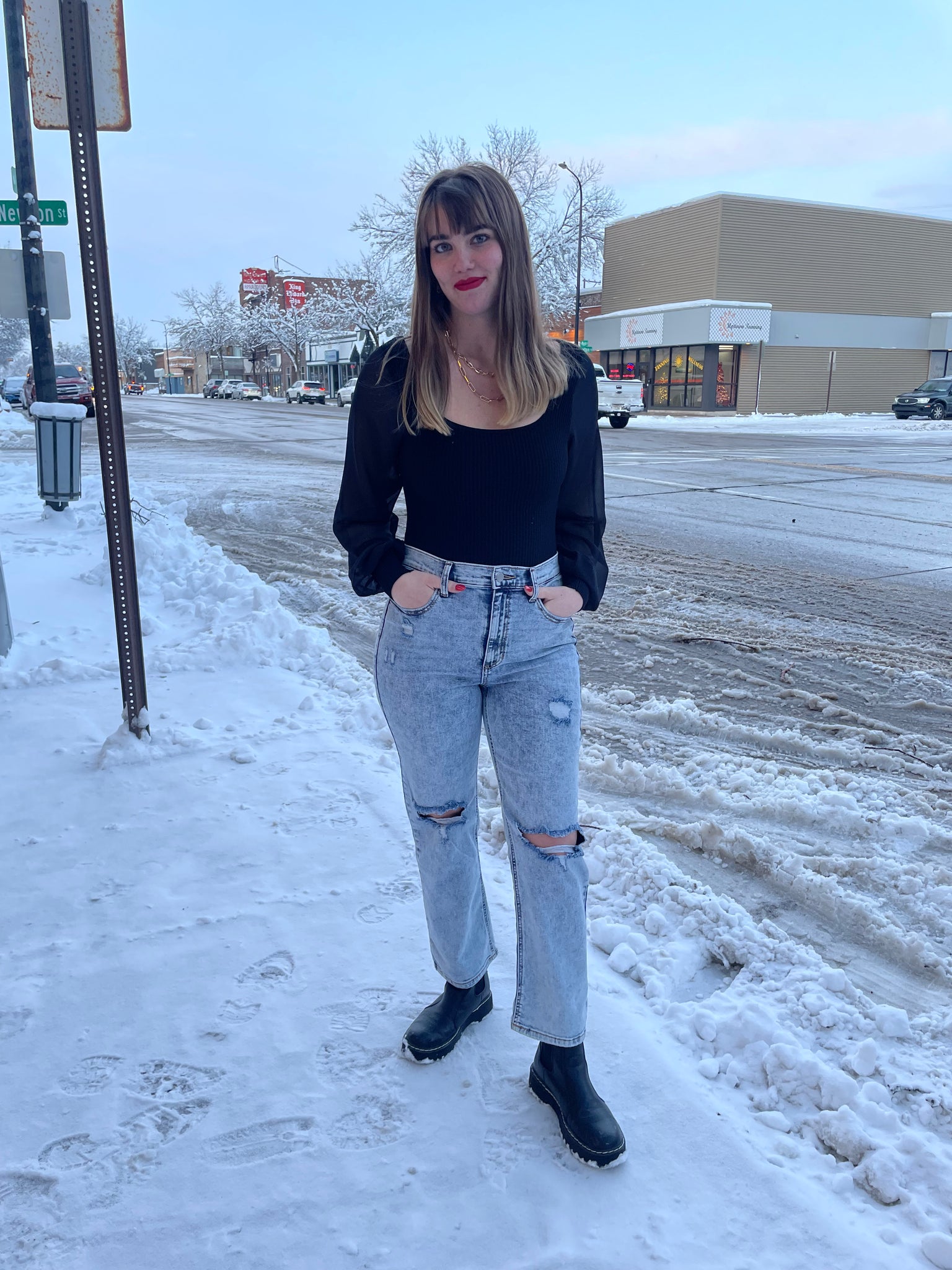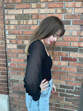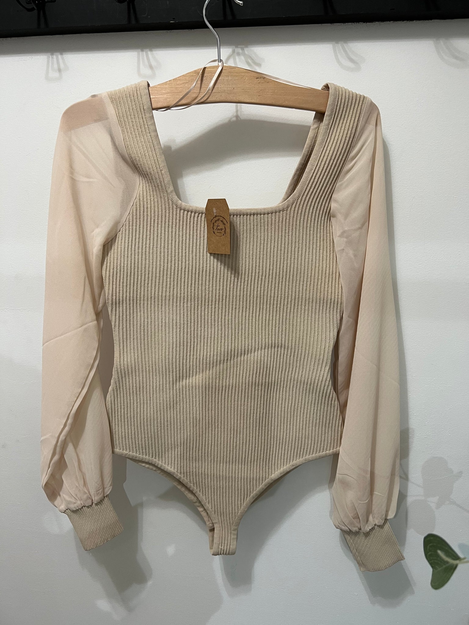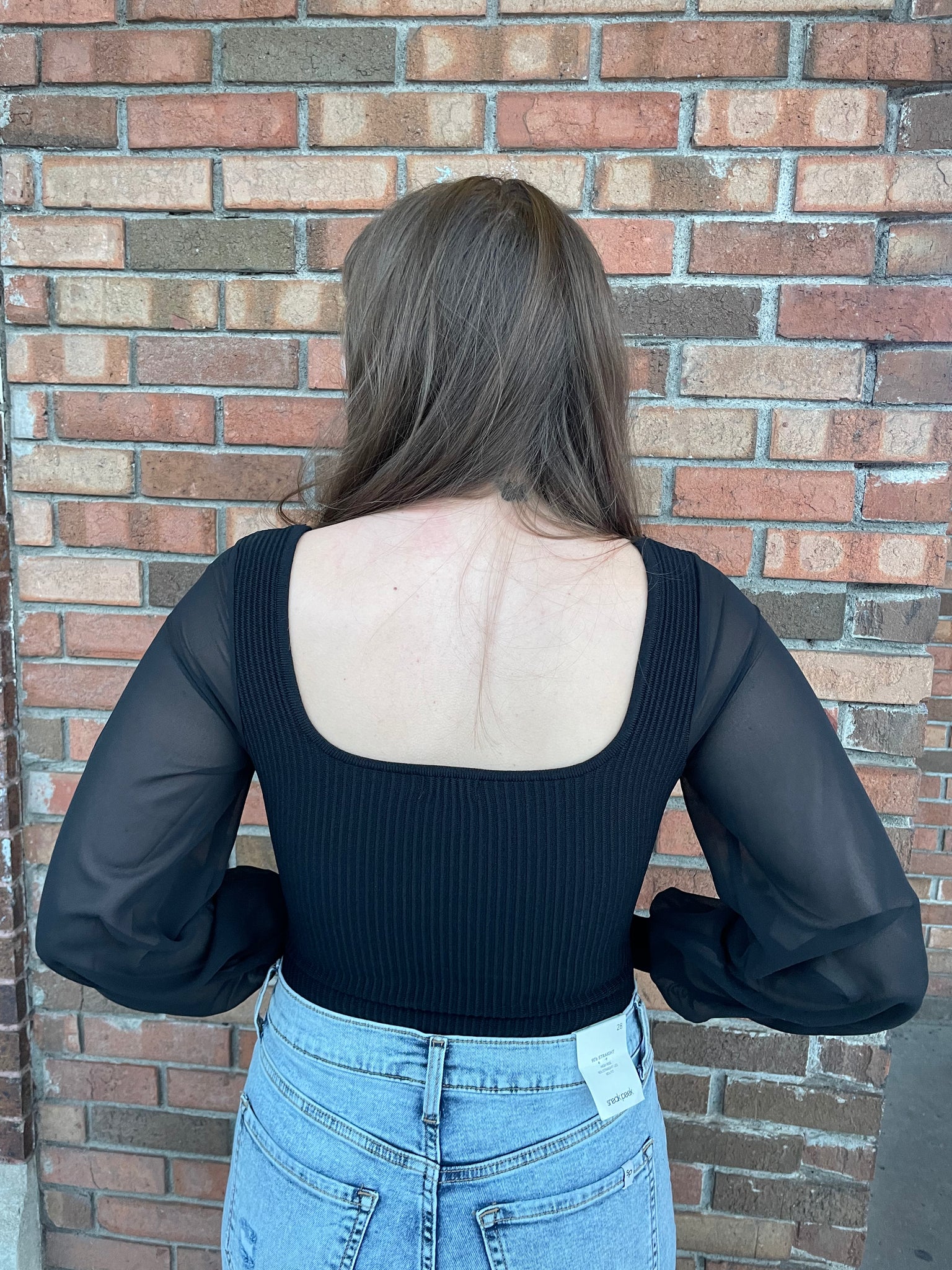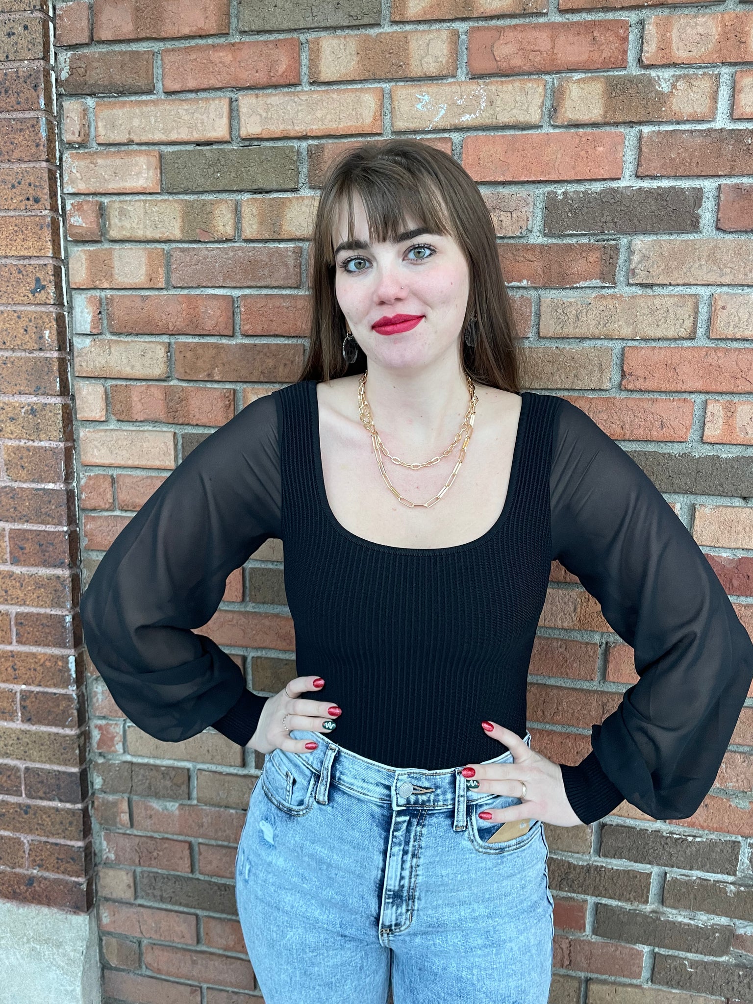 Square Neck Ribbed Sheer Sleeve Bodysuit
