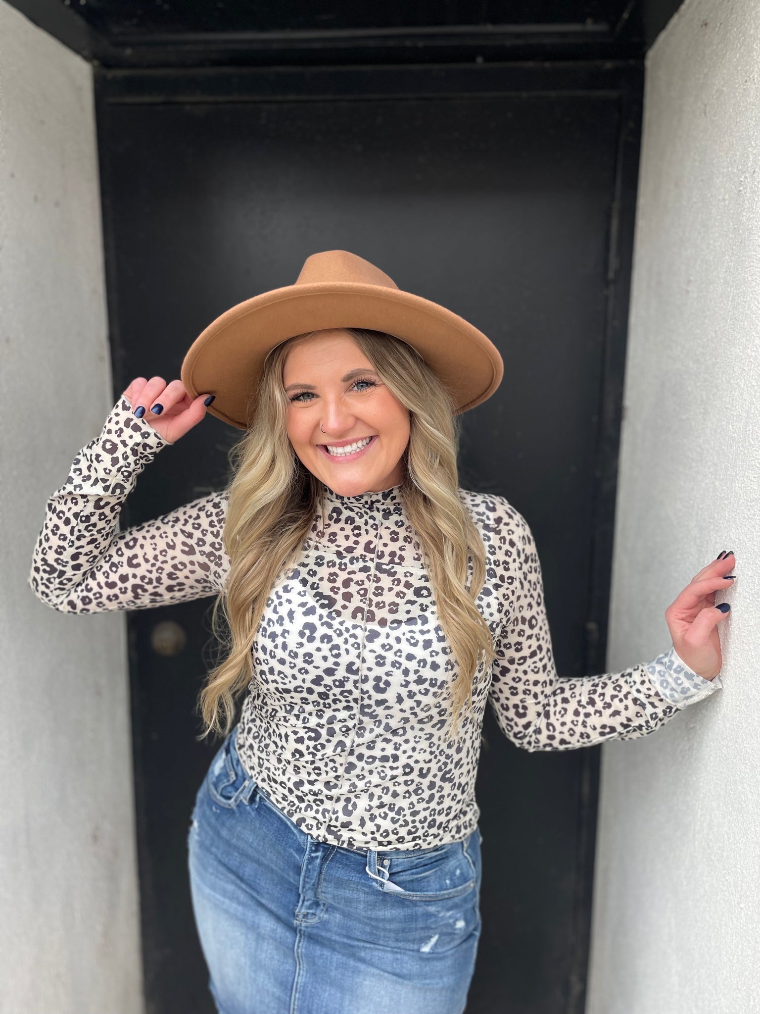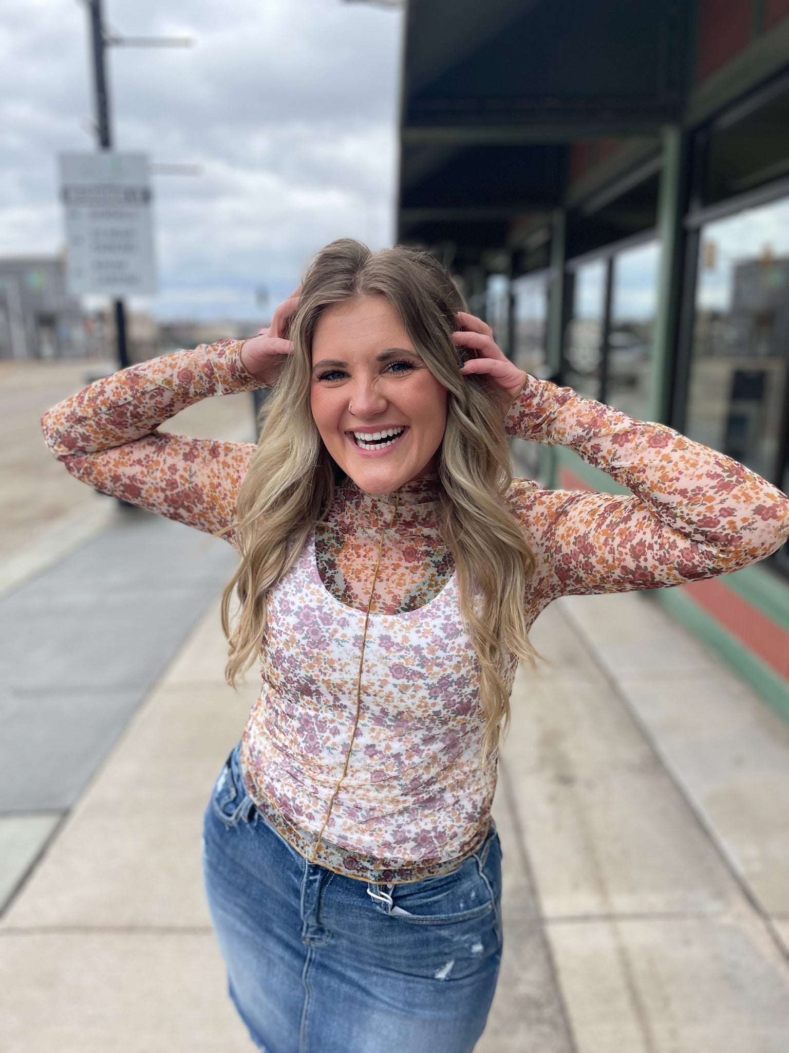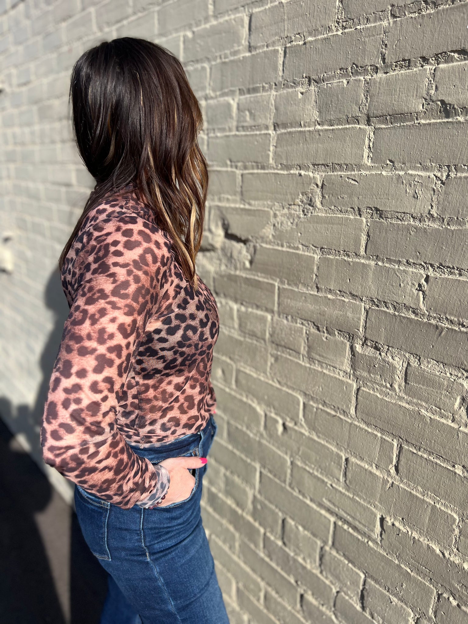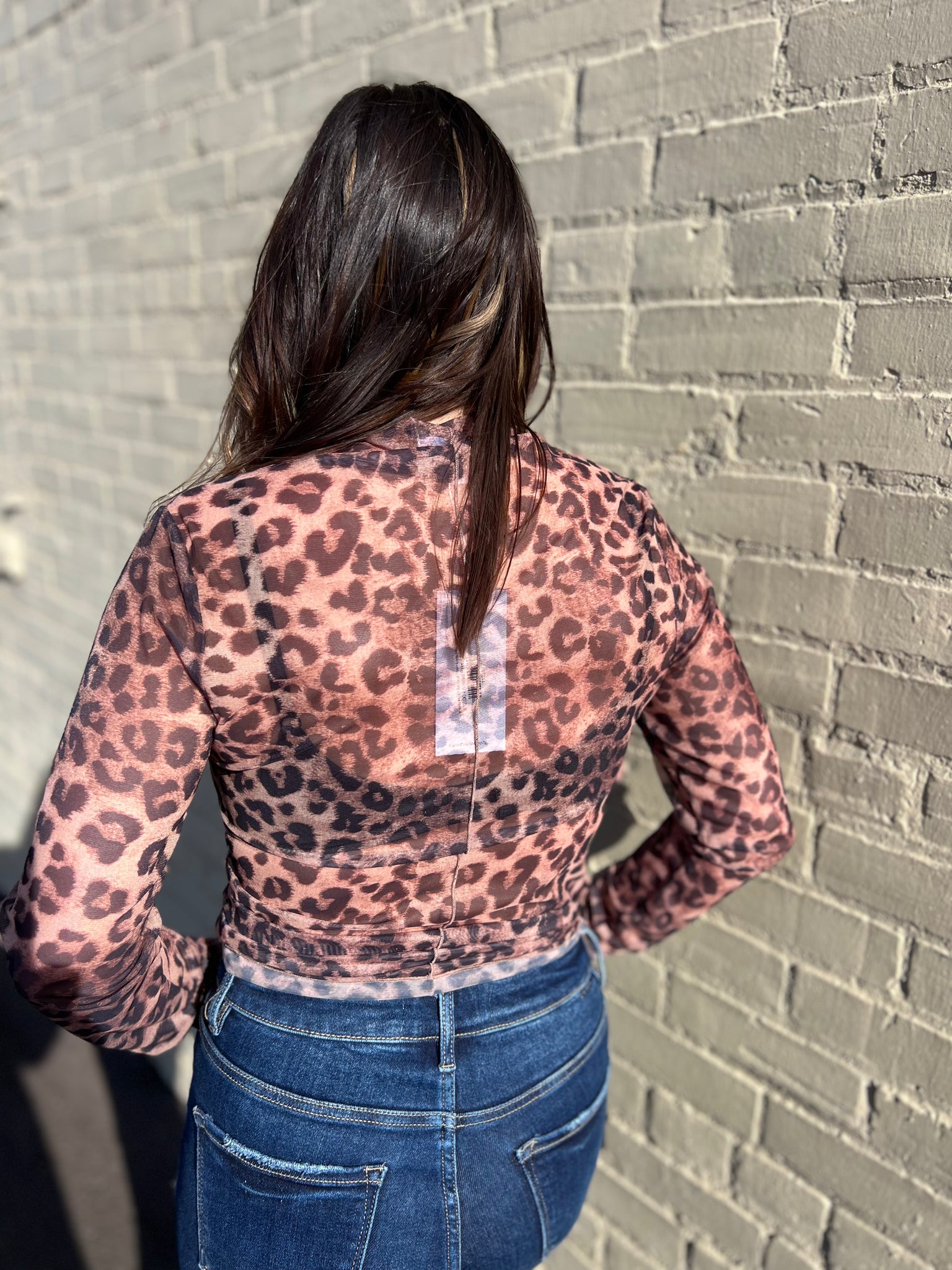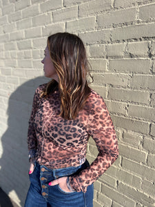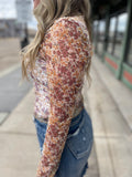Printed Mock Neck Sheer Long Sleeve