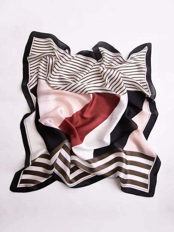 outfit with this colorblock satin bandana scarf.