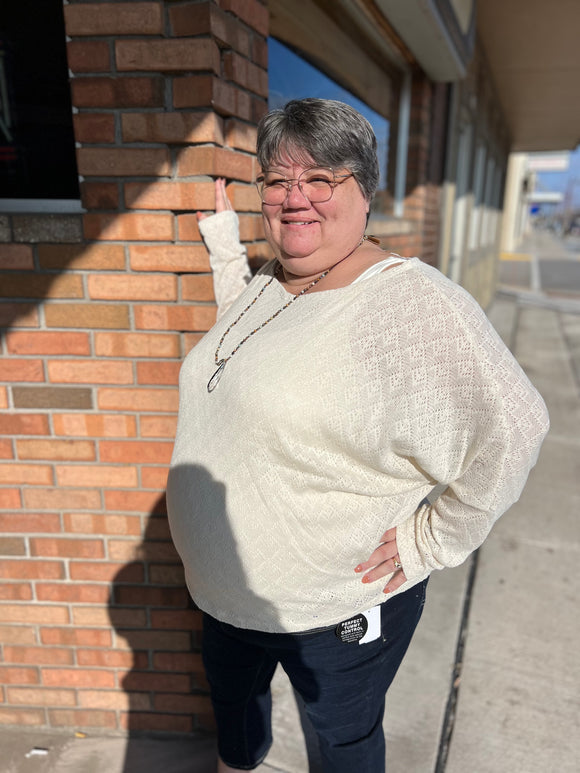 Dolman Sleeve Eyelet Sweater