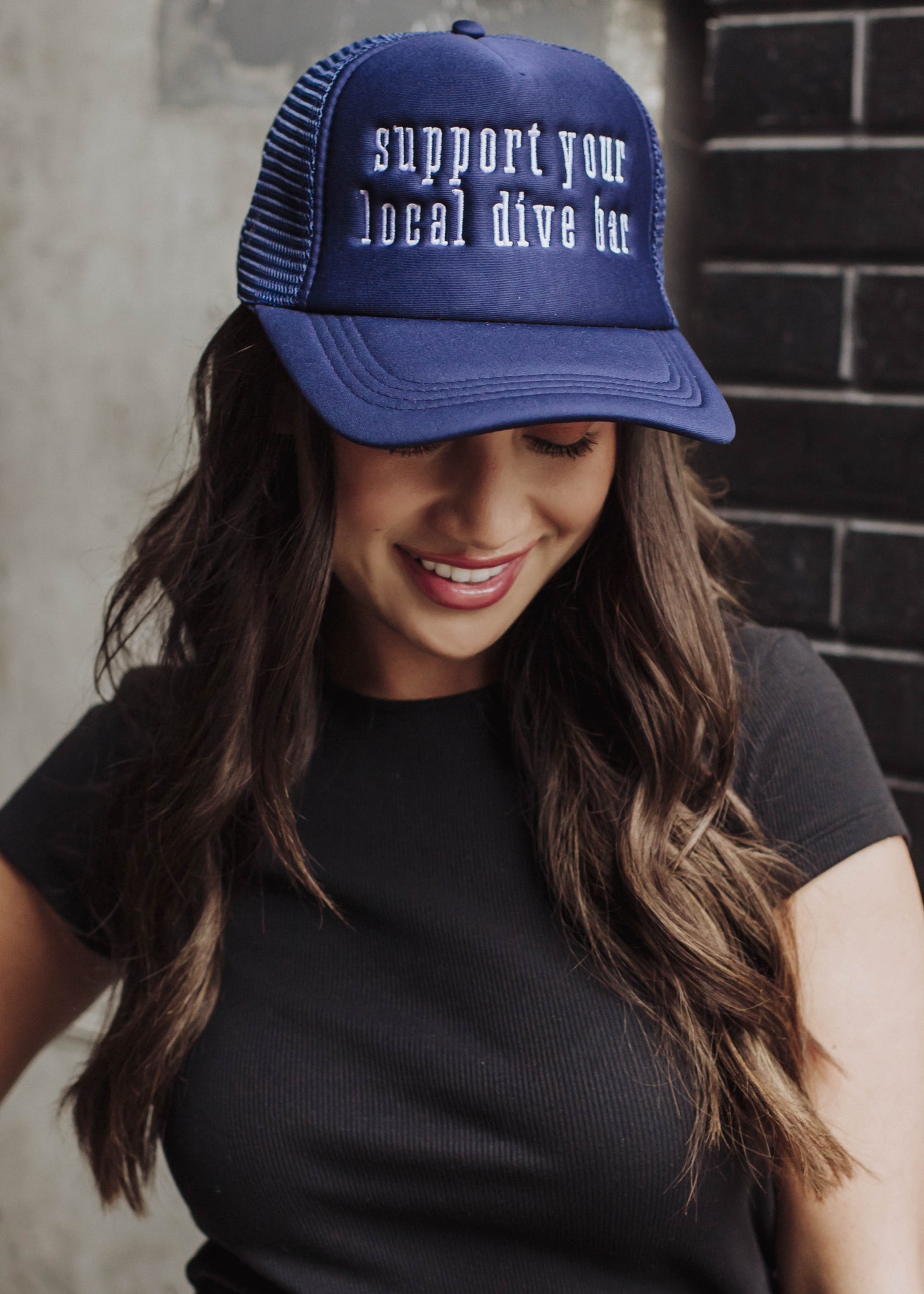 Navy With White "Support your local dive bar" embroidered on front