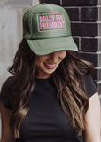 Olive with Pink "Dolly for President" embroidered on front