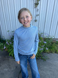 - Soft light ribbed fabricLong SleeveMock Neck - Machine Wash Cold - Lay flat to dry, no heat - Small 6/7, Med 8/10, Lrg 12/14