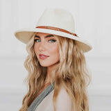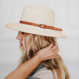 The Grayson Packable Sun Hat is a fun and easy to bring style sun hat with a thin belted brown band. This fun summer hat is giving us all the excitement for warmer weather, beaches and sundresses. It's adjustable and packable for travel! Measurements: Circumference 24" / Brim 3.5" Materials: 100% Paper