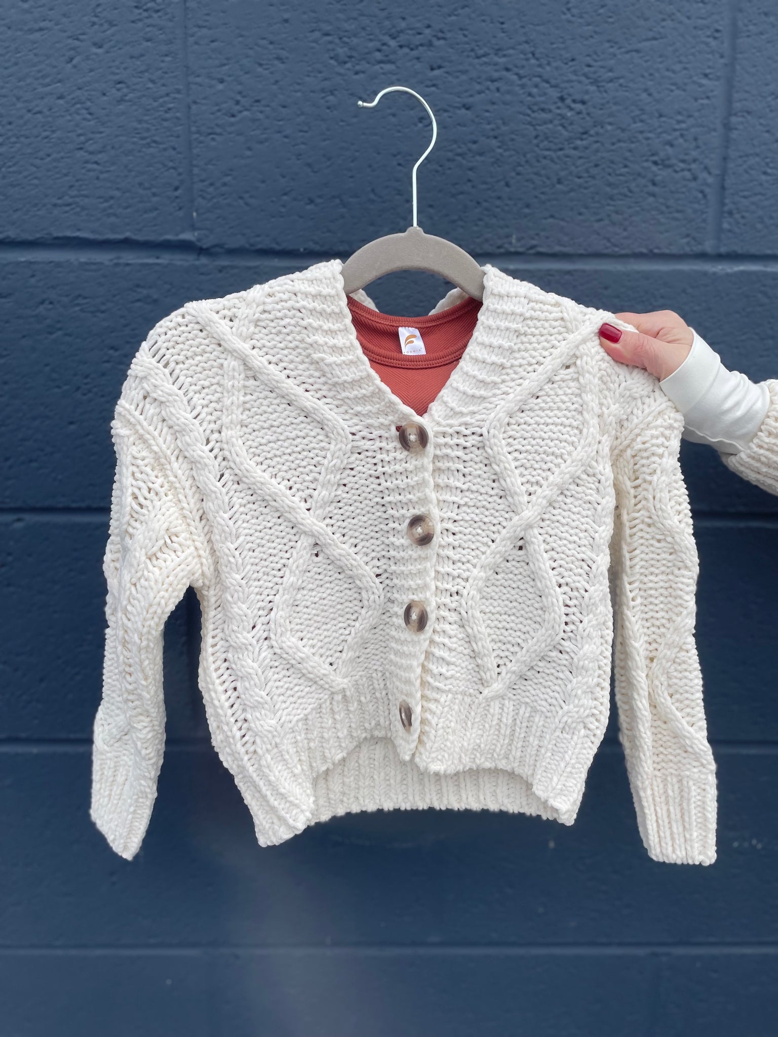 Ivory, Button Close, Soft, Cozy, Cable Knit Cardigan