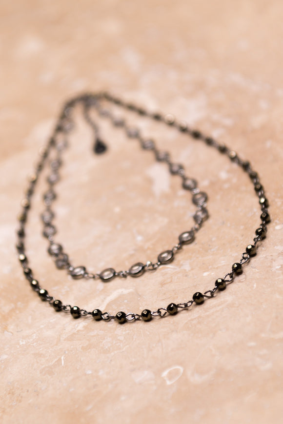 Double Strand Adjustable Necklace one strand features fun puff beads and the other is a chain-link beaded strand.