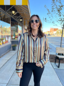 Multi Colored Satin Striped Blouse