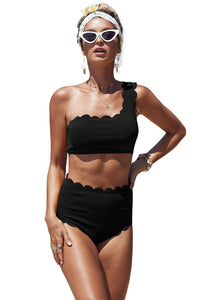 One Shoulder Scalloped High Waist Bikini Set Non Returnable