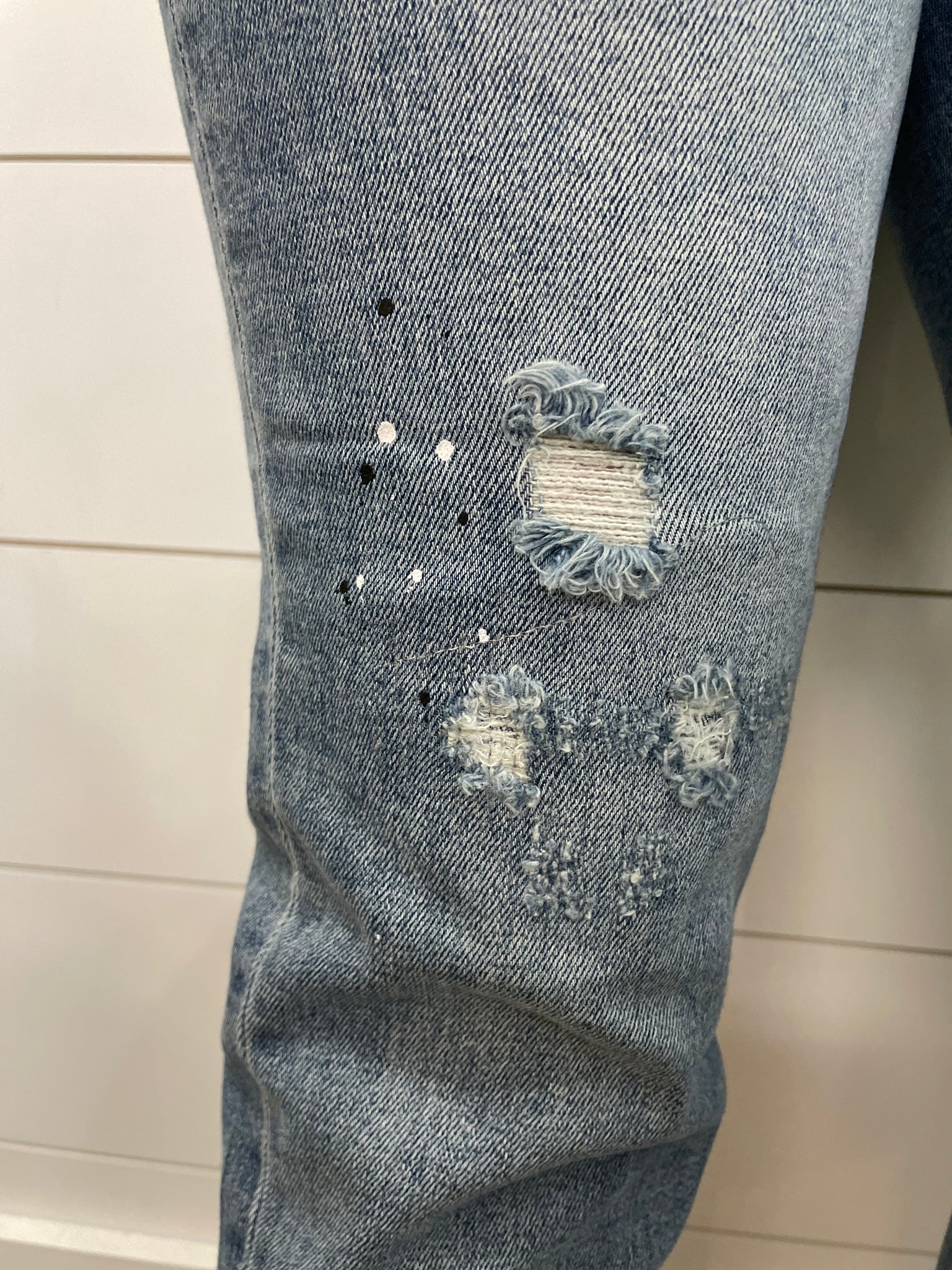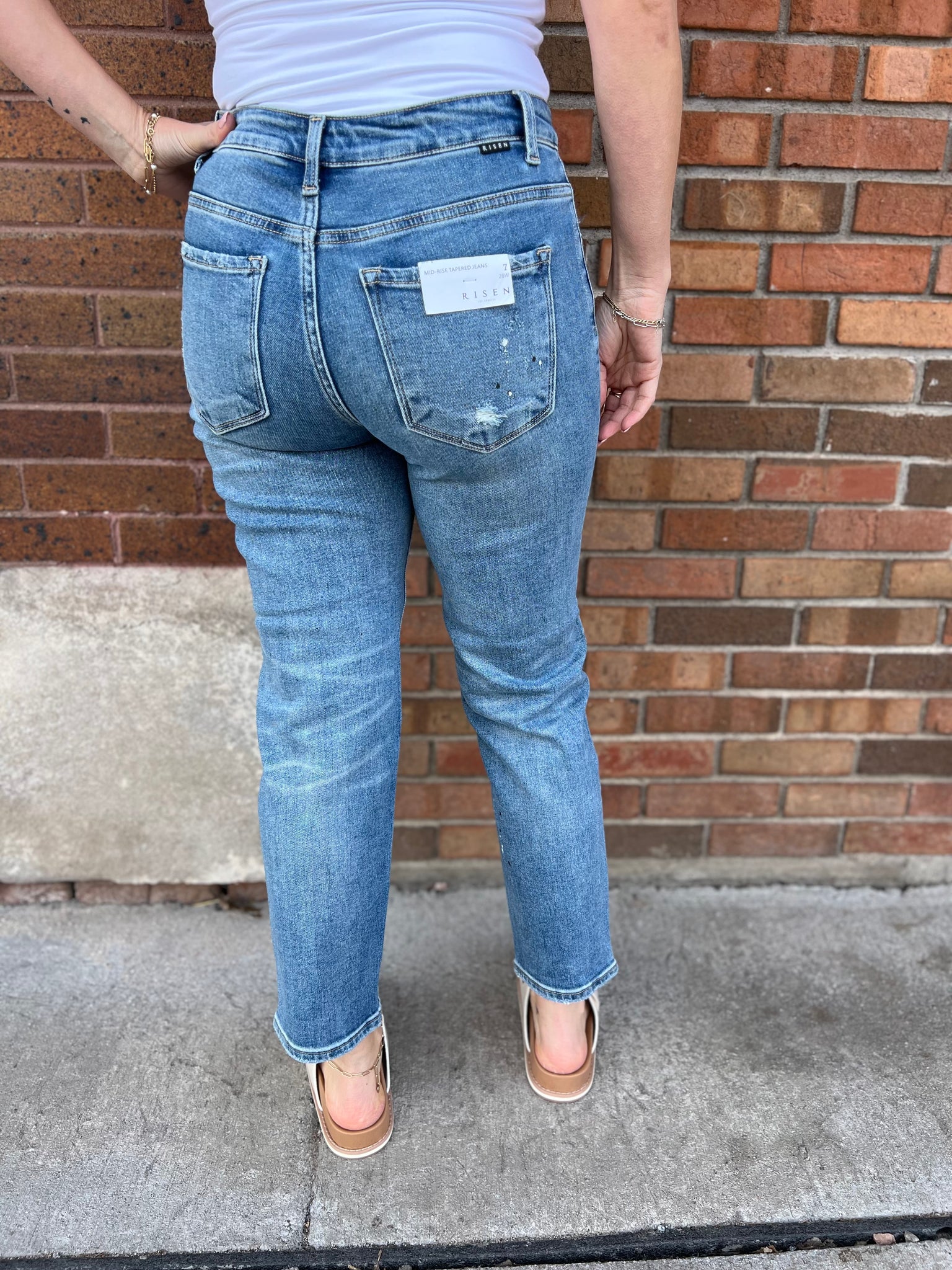 Risen Paint Splattered Mid-Rise Tapered Jeans