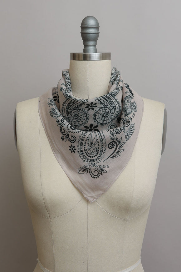 This chic bandana, available in five vibrant colors, boasts a stylish paisley and floral print on soft, lightweight cotton.