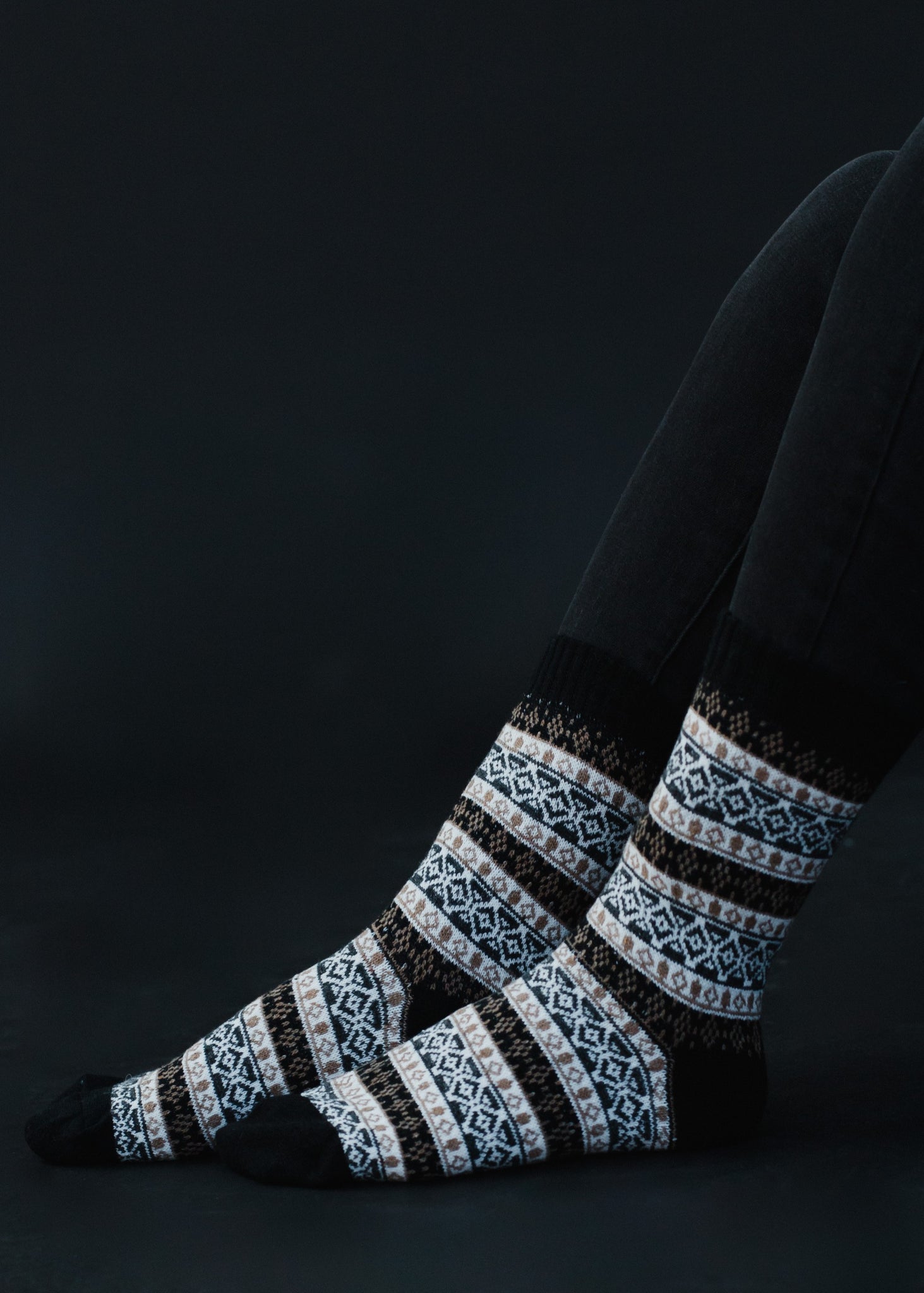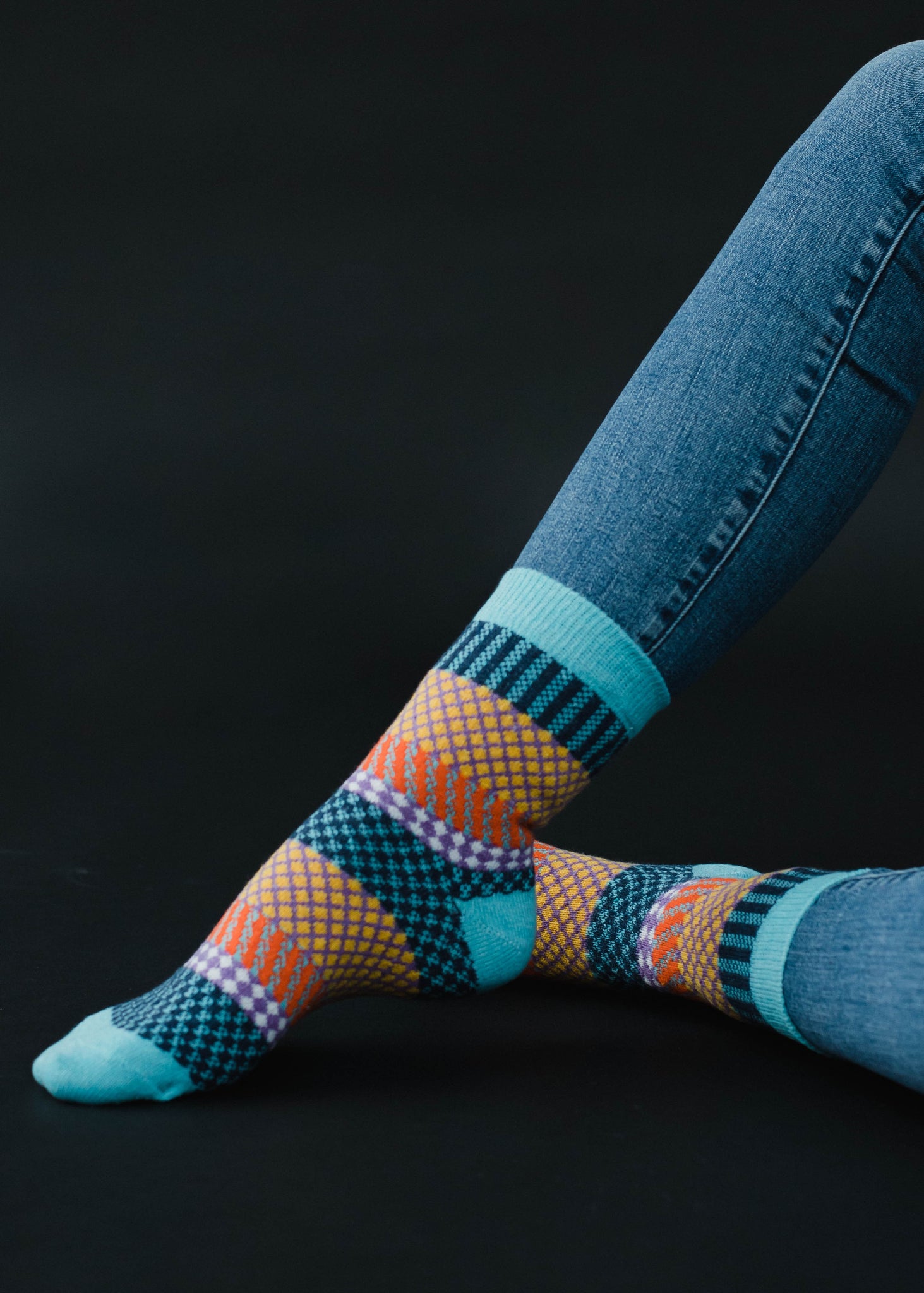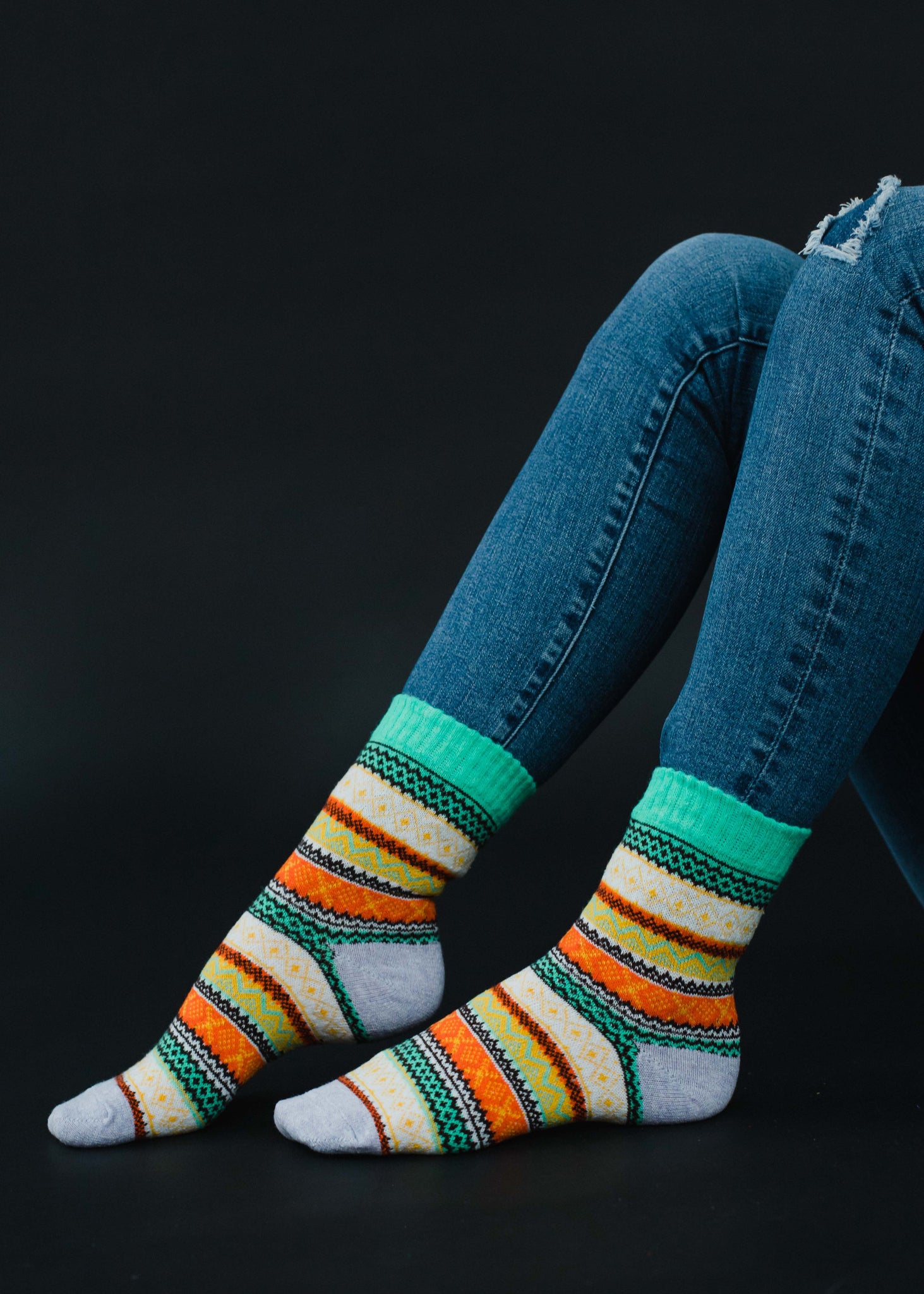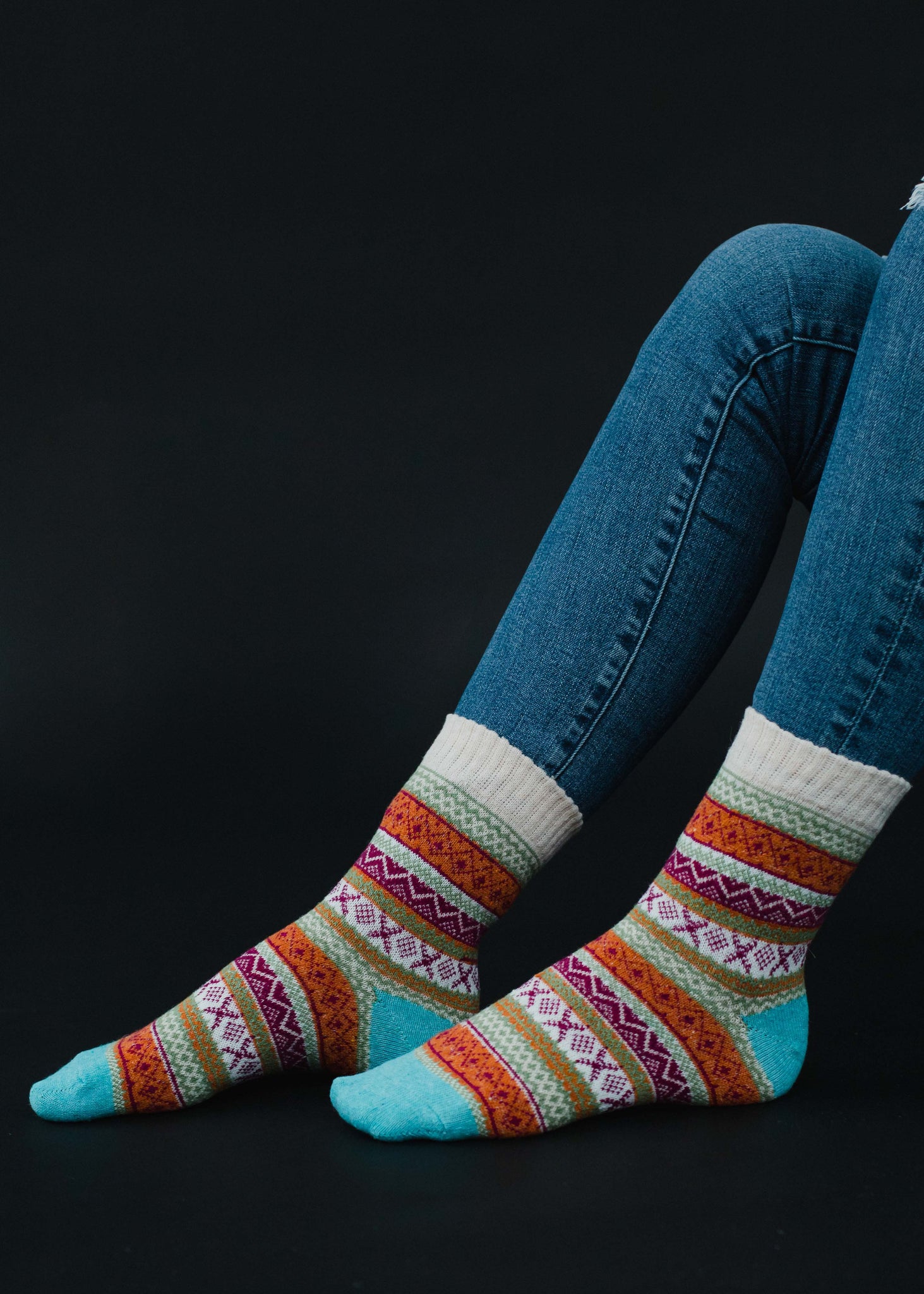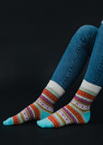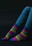 Colorful Pattern SocksWomens Sizes 7-960% Polyester/18% Nylon/14% Acrylic/3% Wool/3% Spandex/2% Cotton