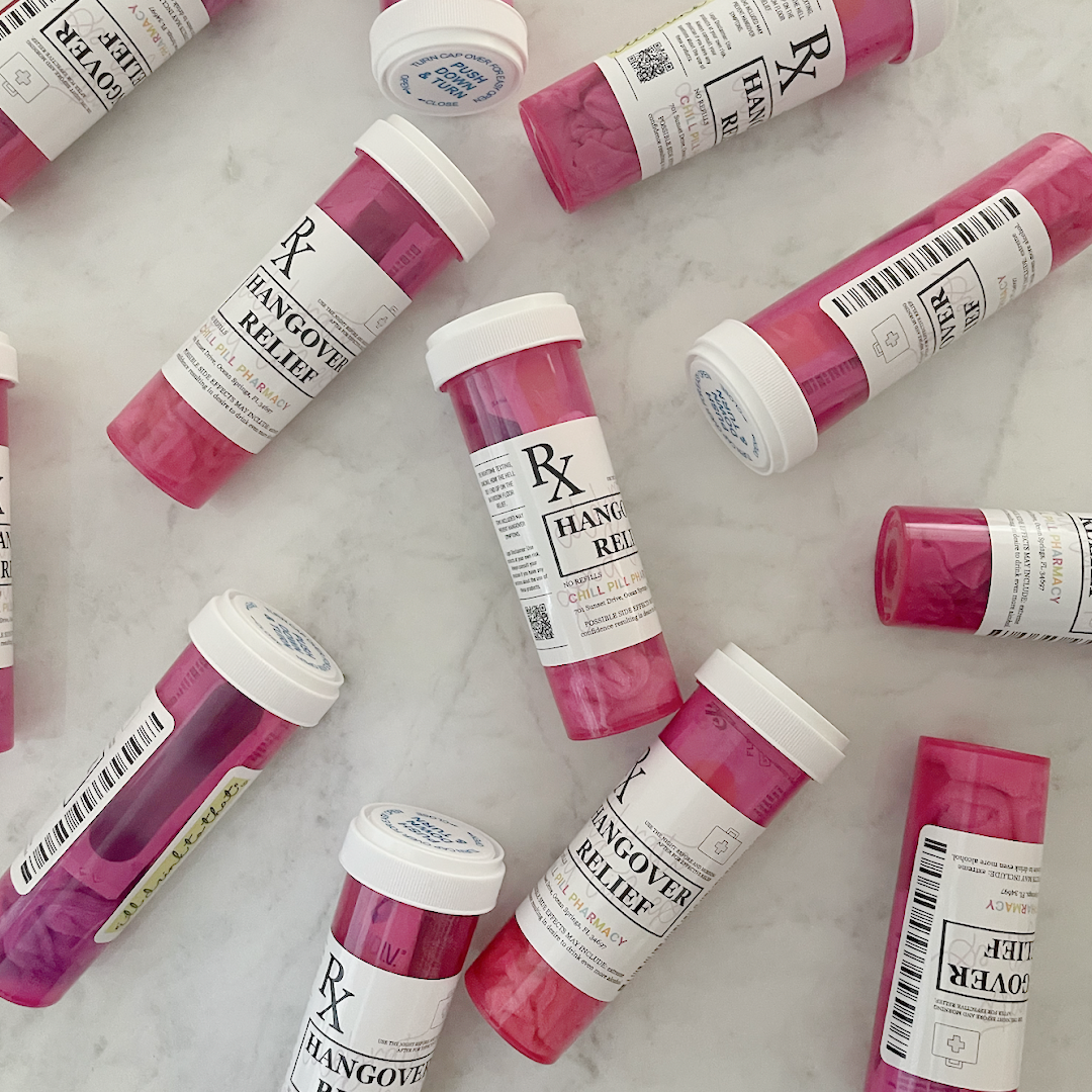 Rx Bottles contain: Scrunchie, Shout Wipe, Advil, Liquid IV, Band-aid and a mint!