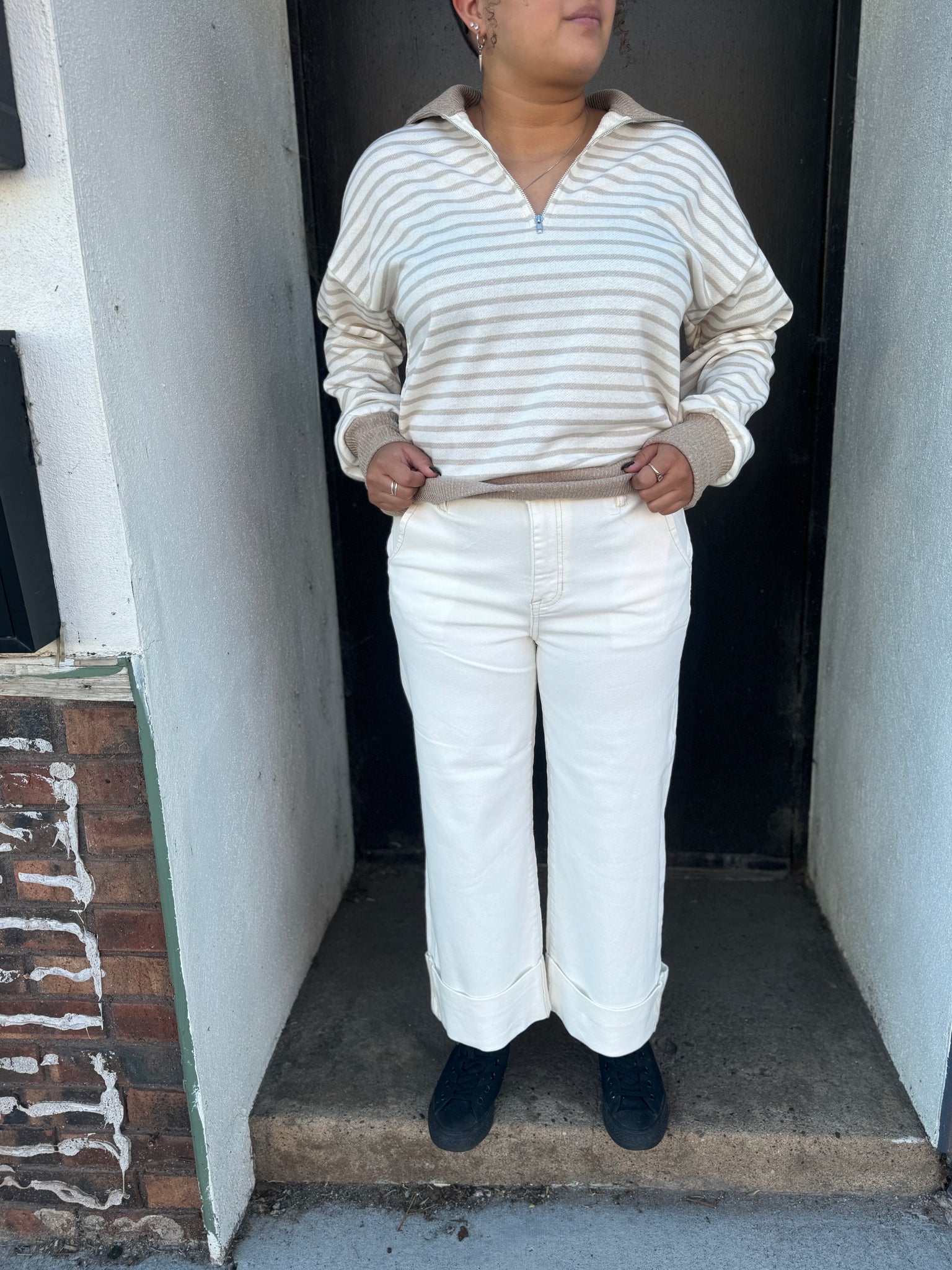 Risen High Rise Ankle Cuffed Wide Leg Jeans