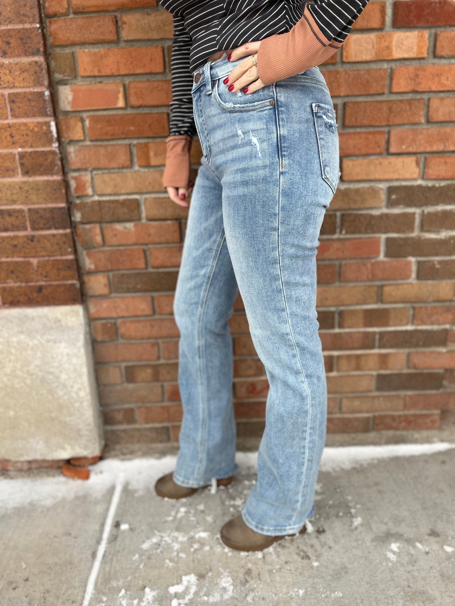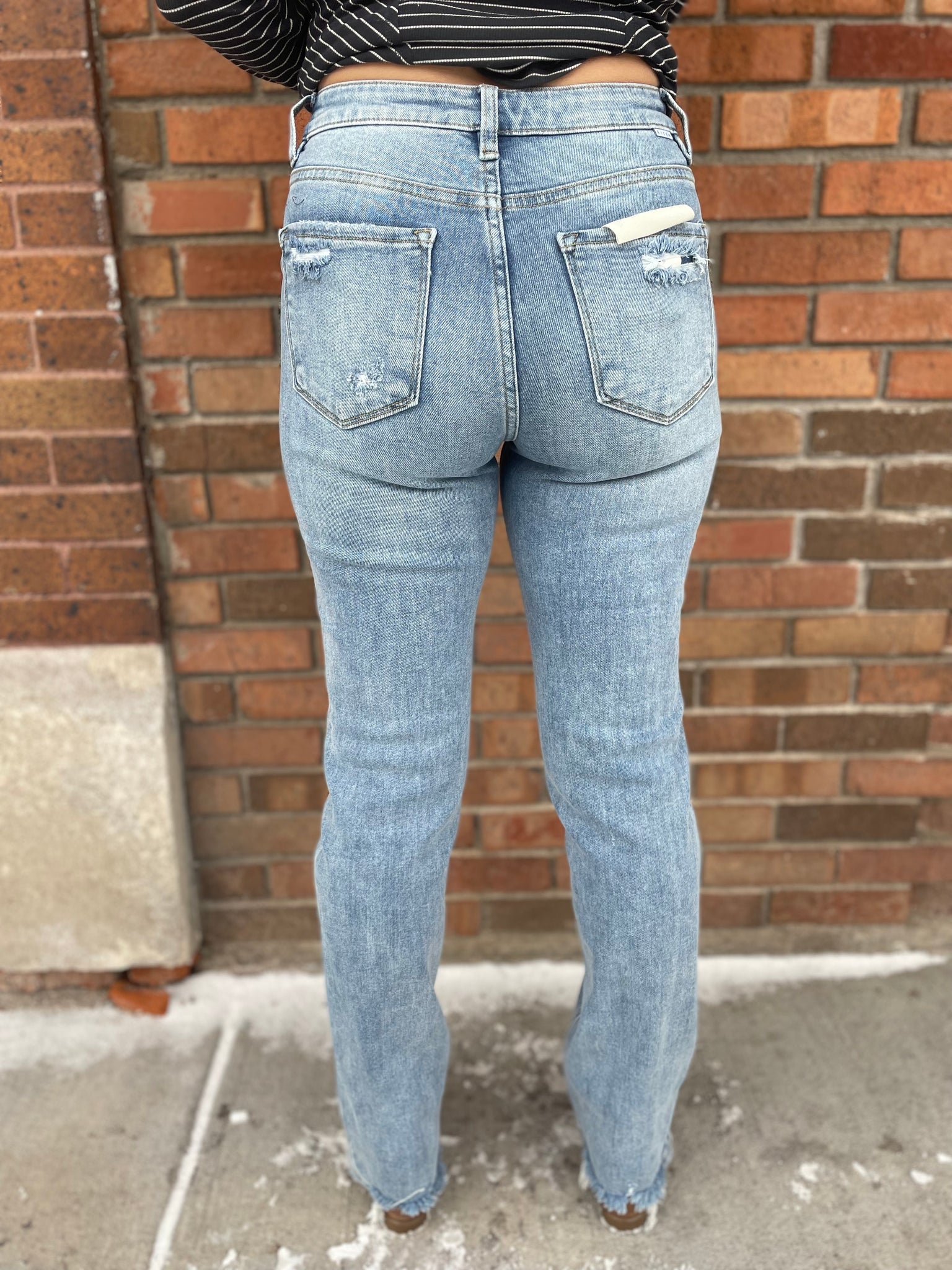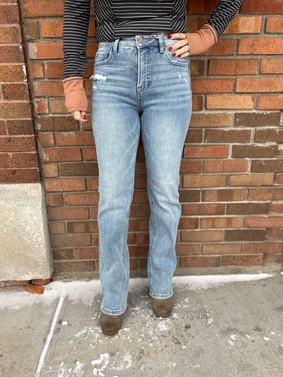 Risen Tummy Control High Rise Straight Distressed Jeans