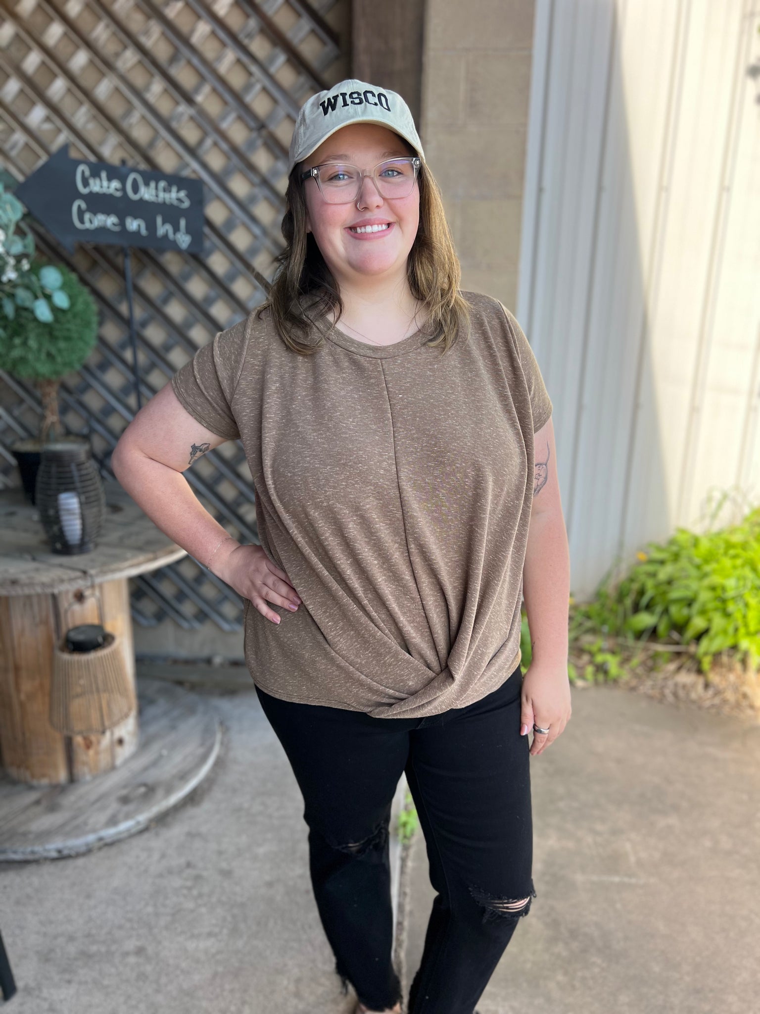 Round Neck Front Twist Short Sleeve
