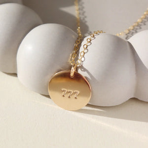 Each shiny gold-filled or sterling silver disc is hand-stamped with your personal angel number for a unique and meaningful piece.