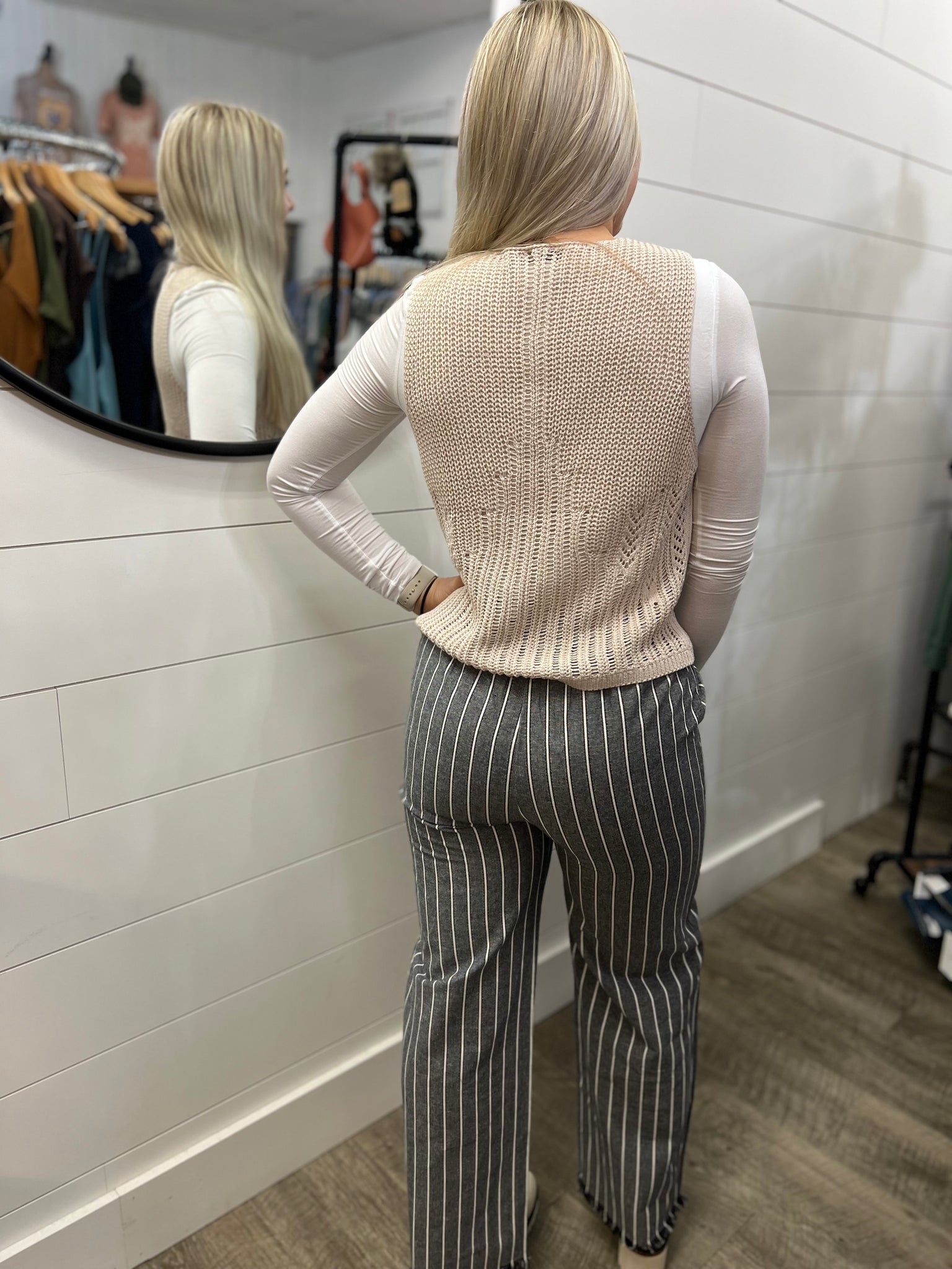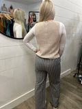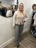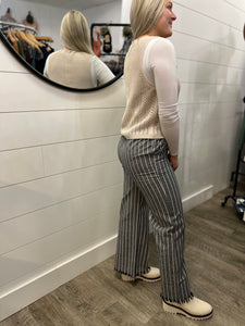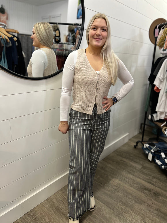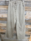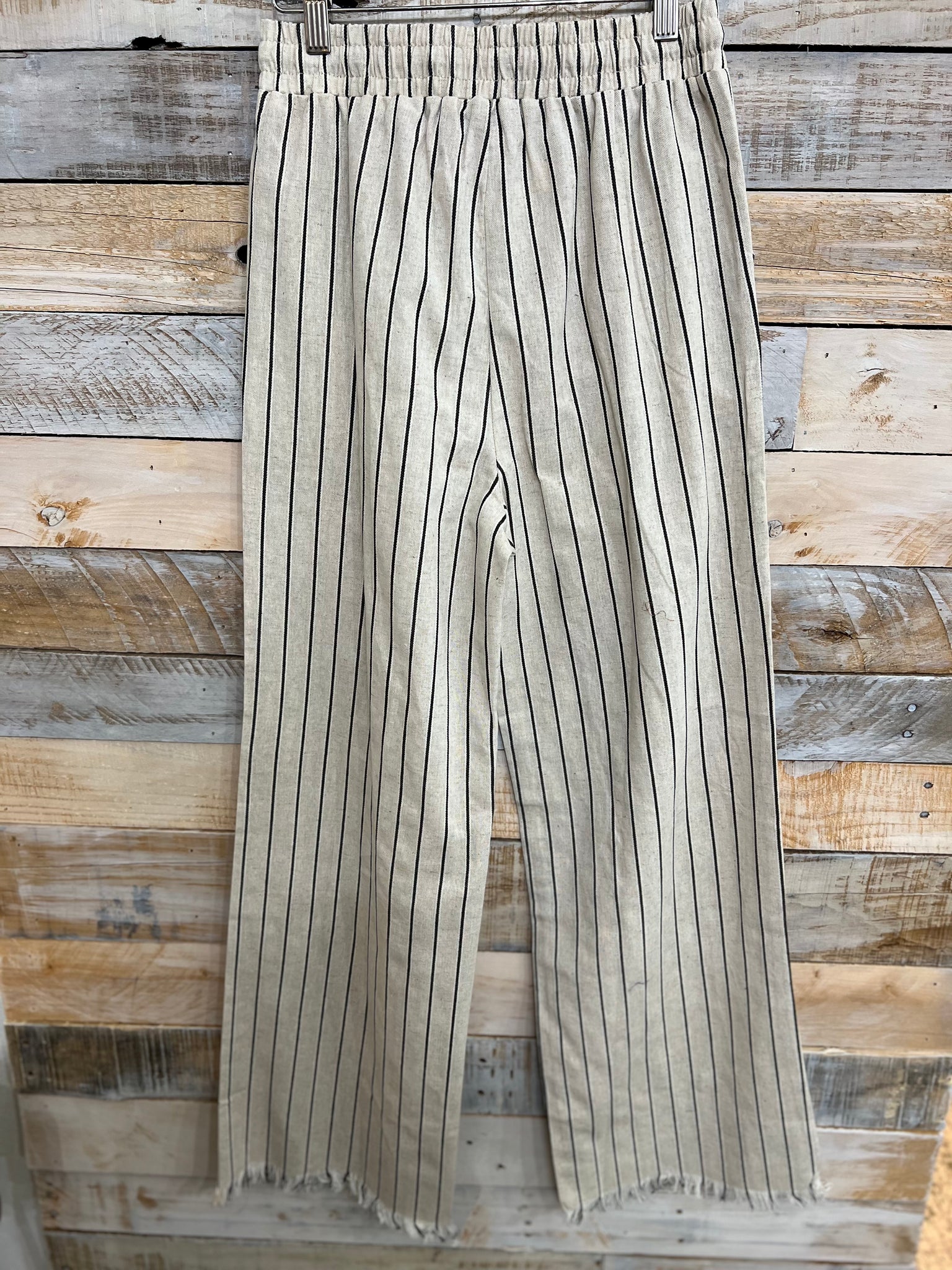 Wide Leg Stripe Pants W/Frayed Hem Detail