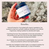 Natural Protection: Formulated with organic ingredients, this sunblock is free from synthetic additives, parabens, and artificial fragrances, making it perfect for sensitive skin types.