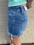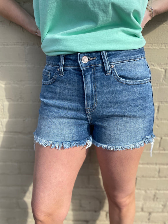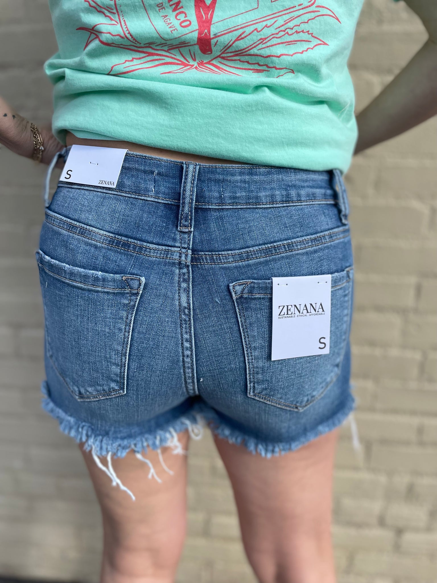 Zenana Mid Rise Raw Frayed Hem Denim Shorts